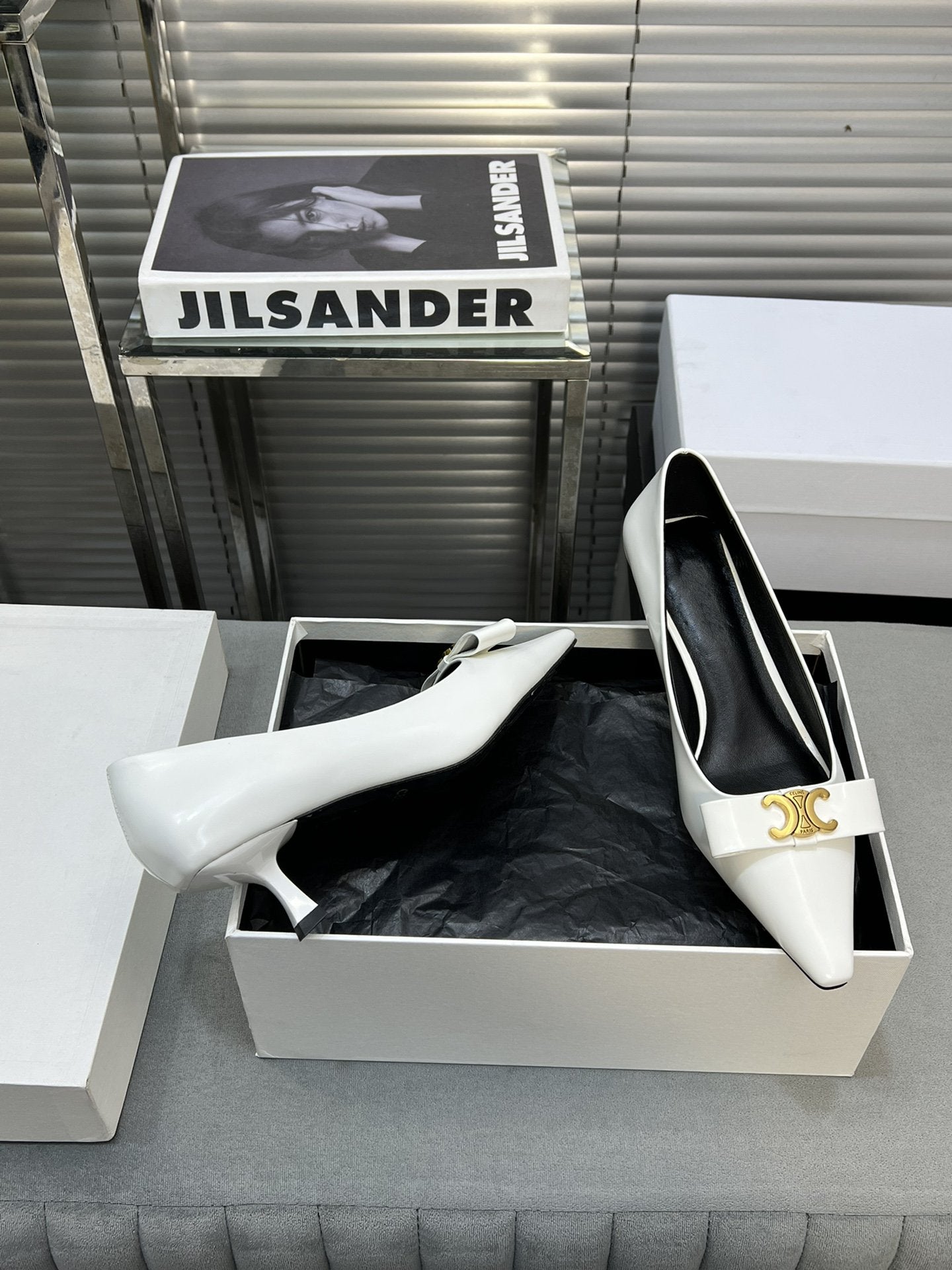 CELINE Slingbacks White Patent Leather 285940