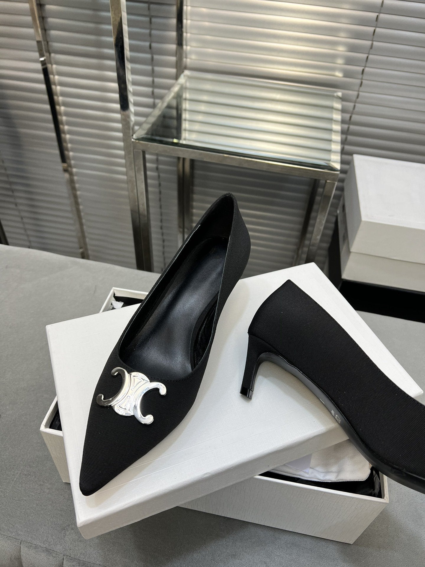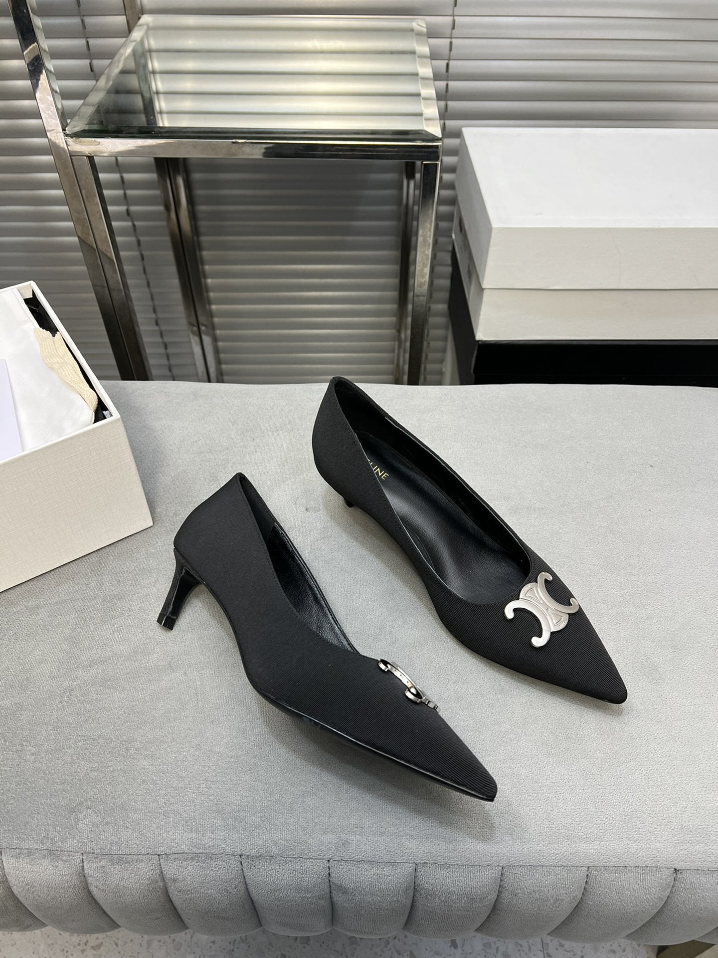 cl pumps 50 black calfskin silver logo
