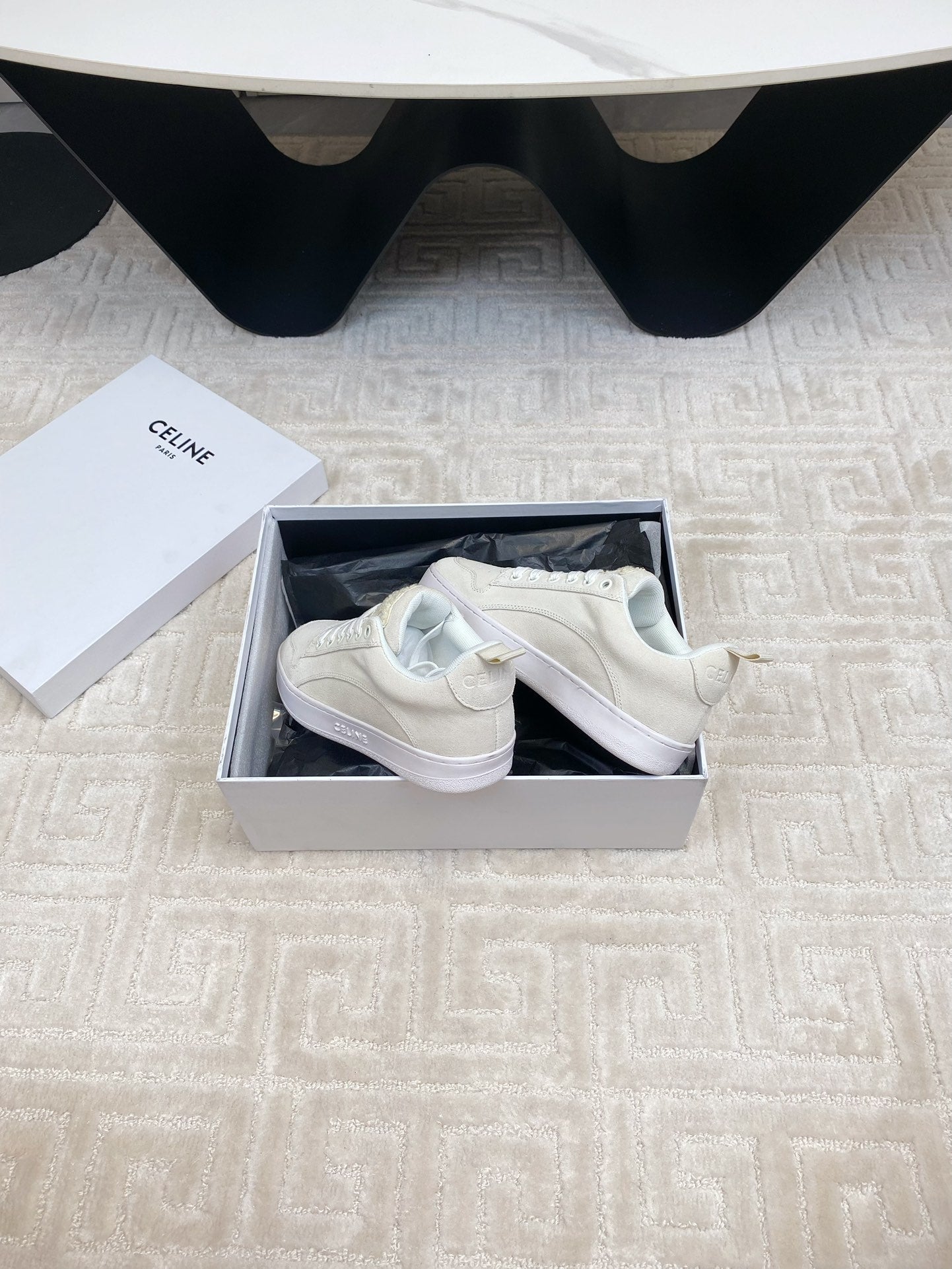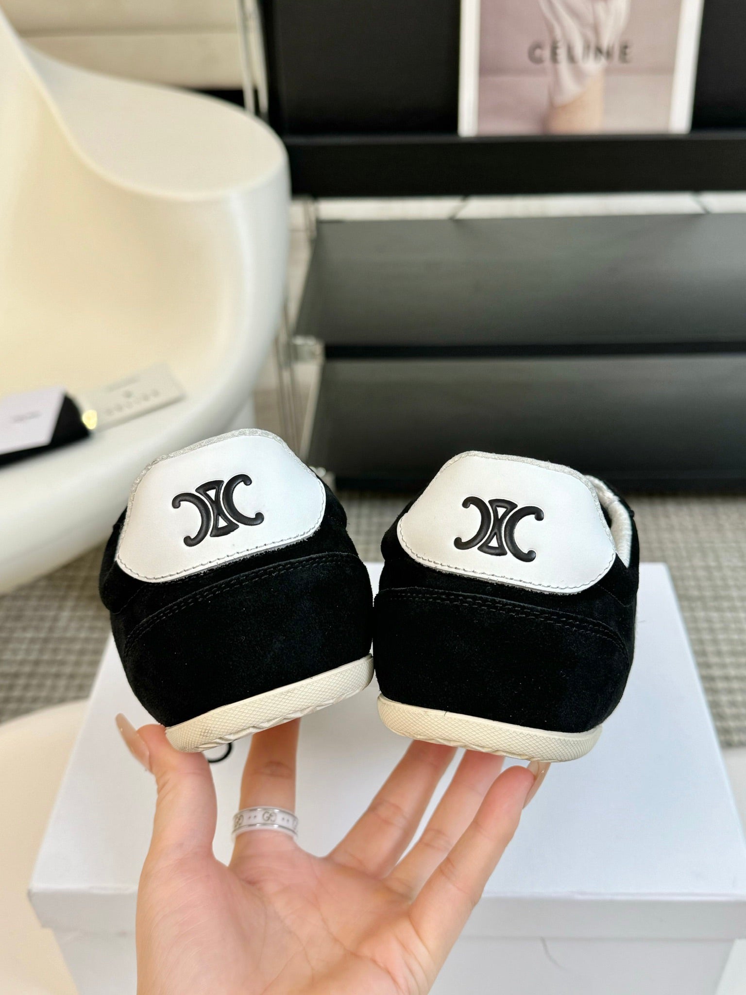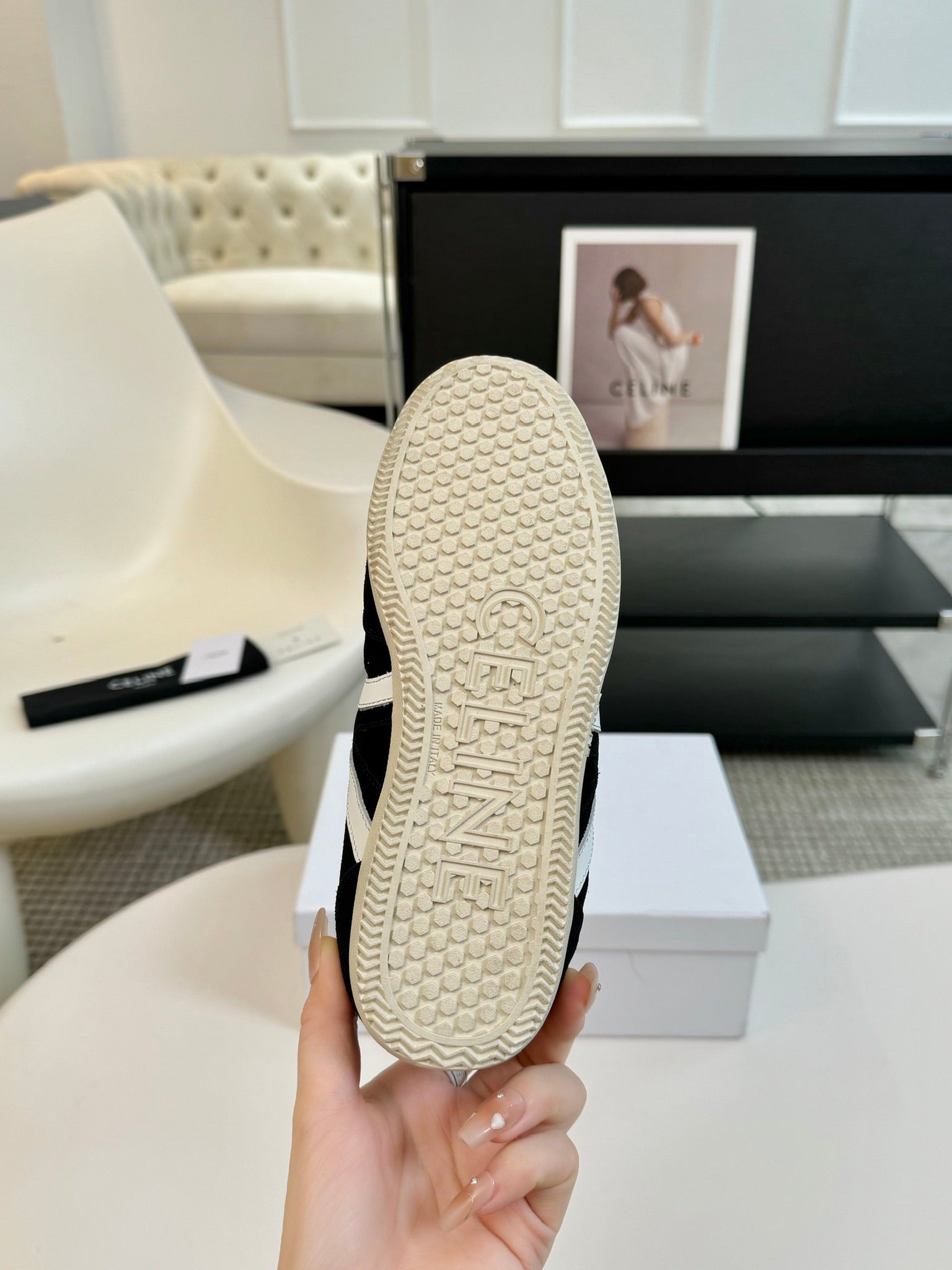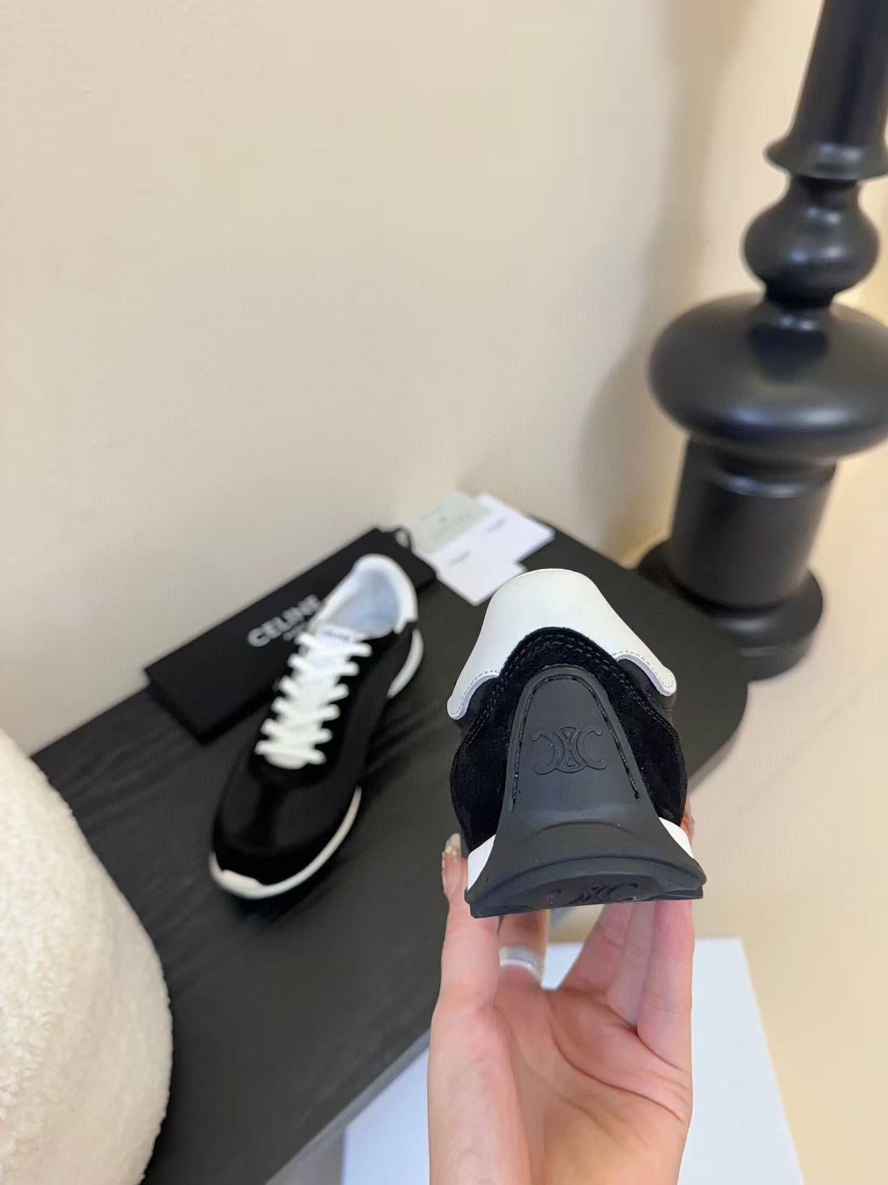 Celine Racer Low Top Sneaker Black White Suede Calfskin