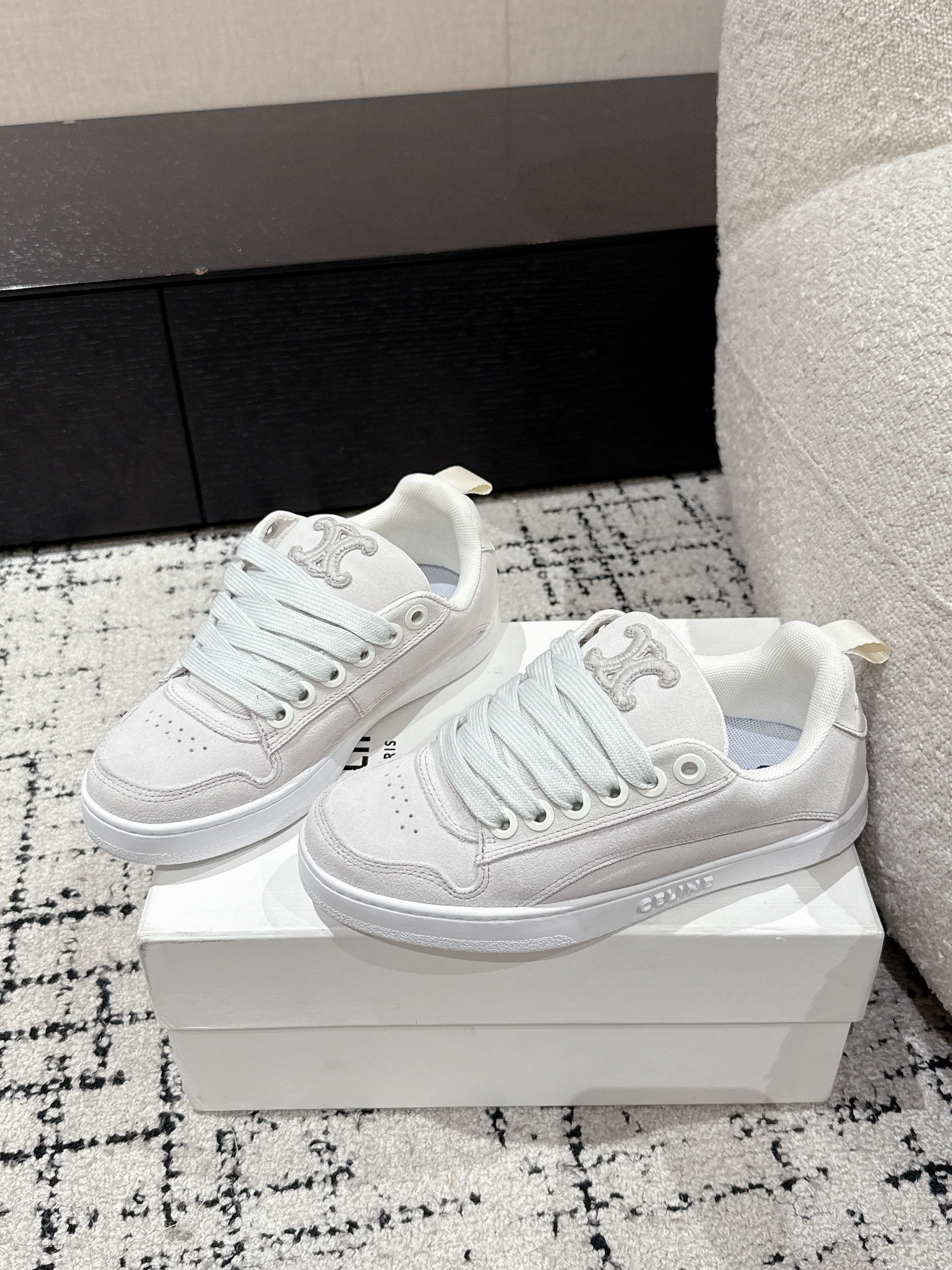 CELINE 25C Huntington Low Top Sneaker White Suede 232344