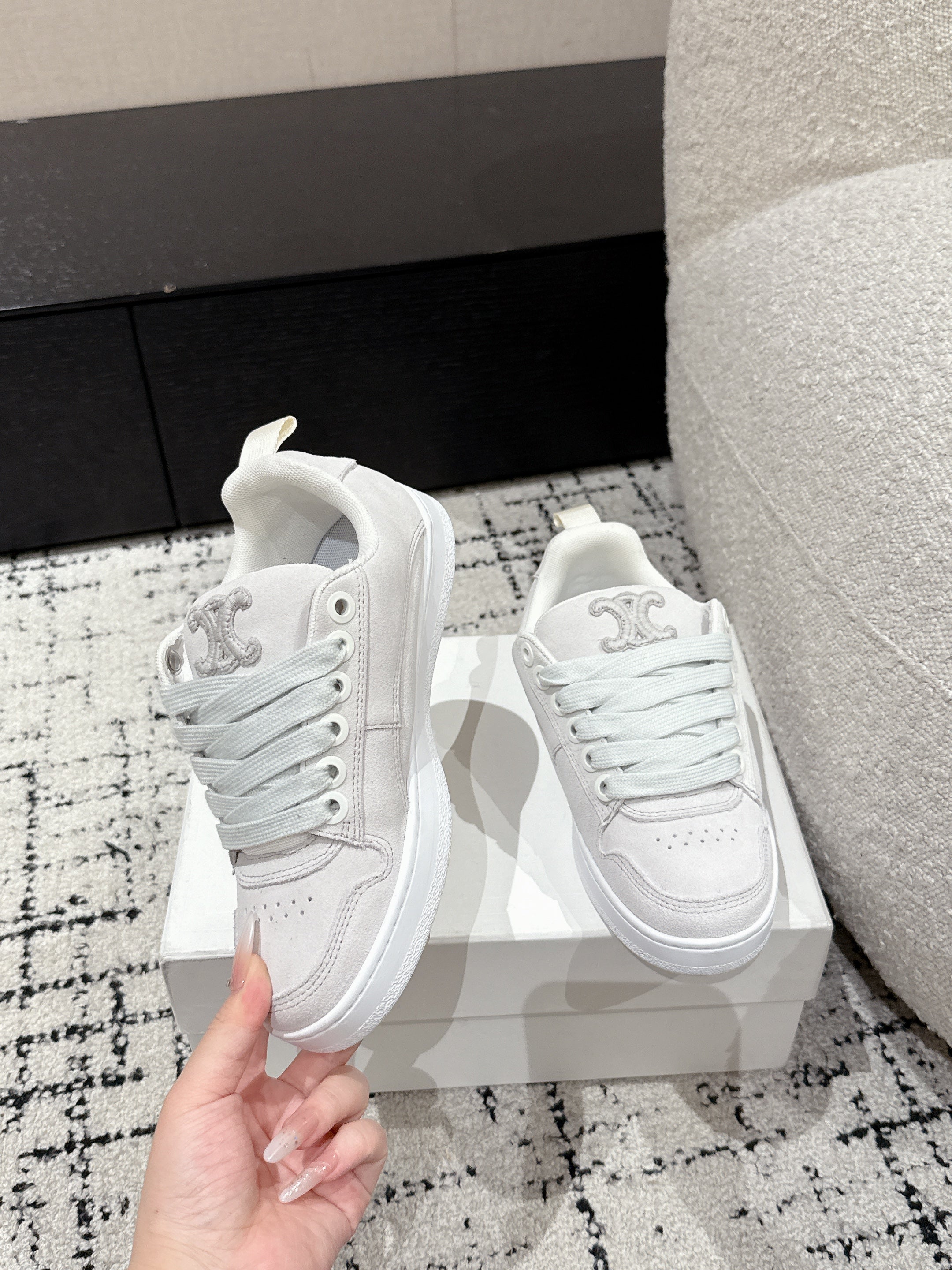 Celine Racer Low Top Sneaker Vanila Grey Suede Fabric