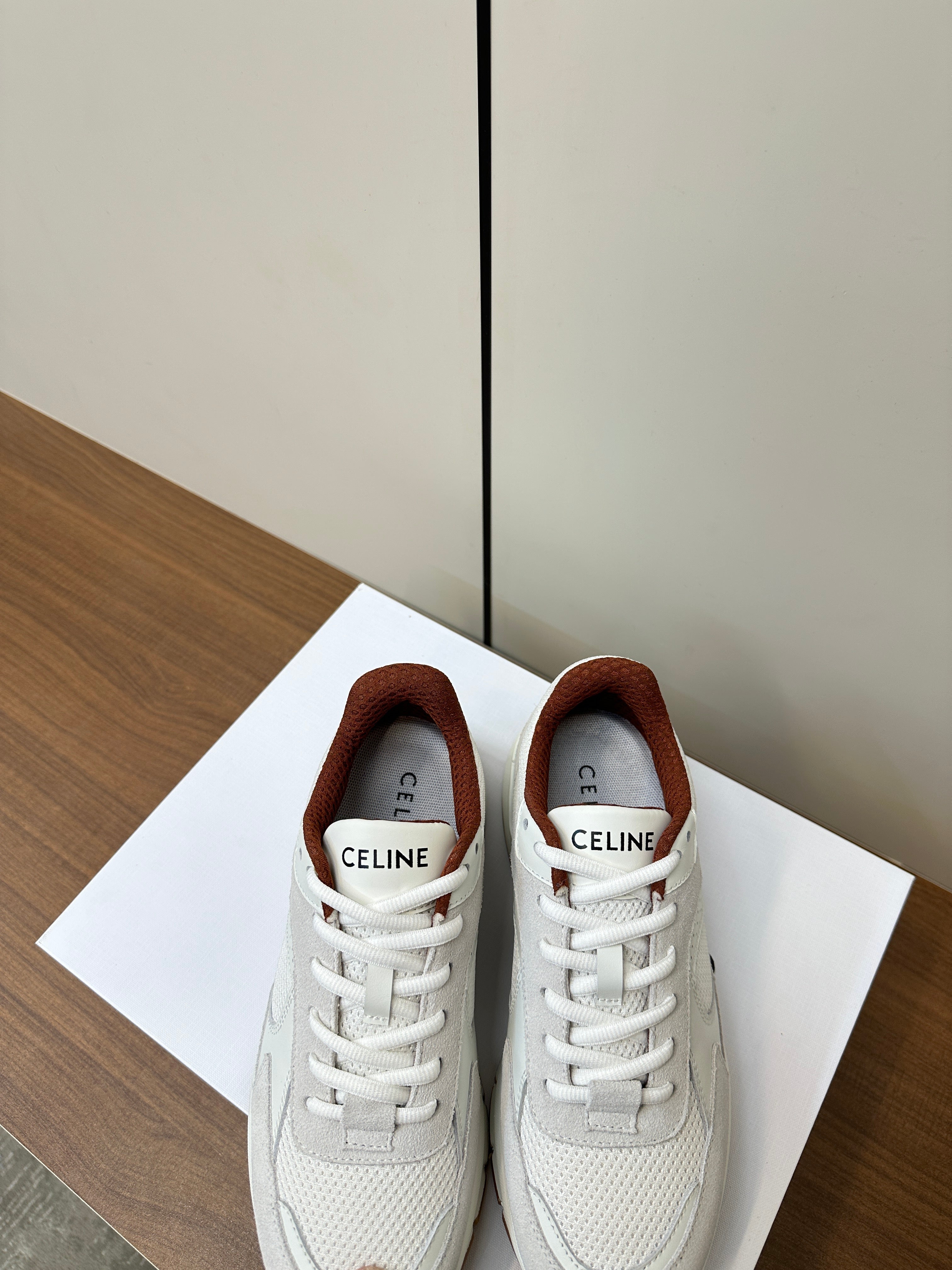 CELINE 25C Block Sneaker White mix Khaki Brown Calfskin 231996
