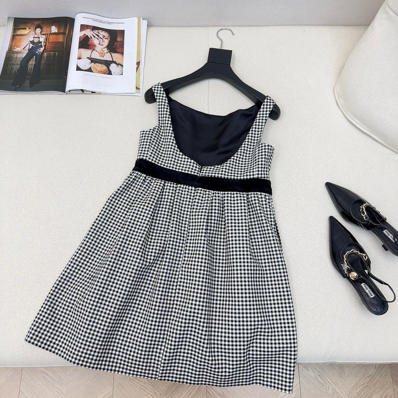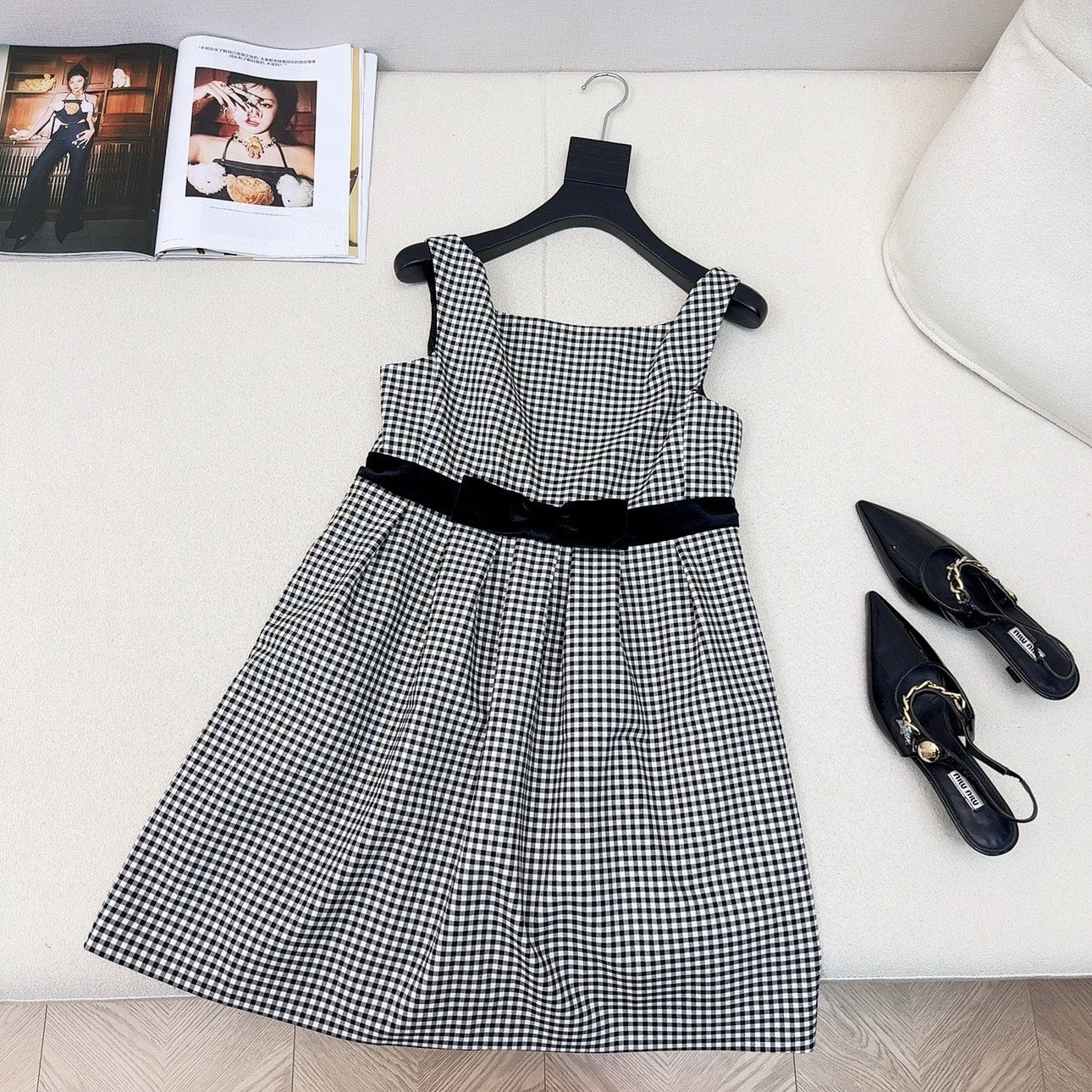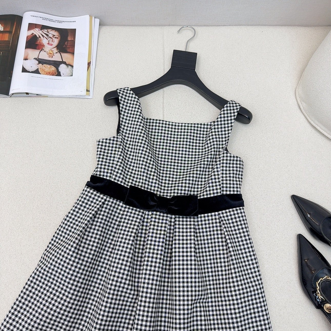 Celine 25 Bow Dress Black mix White Polyester Cotton 607798