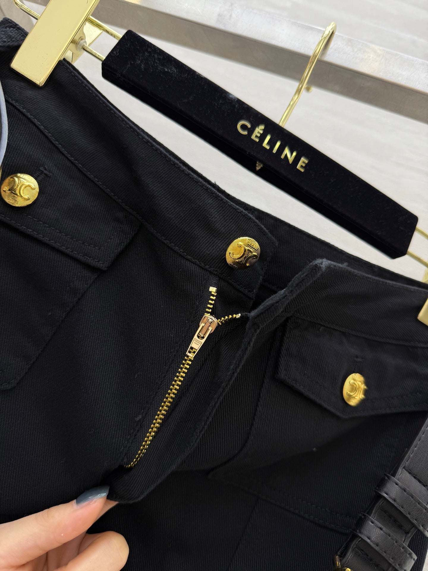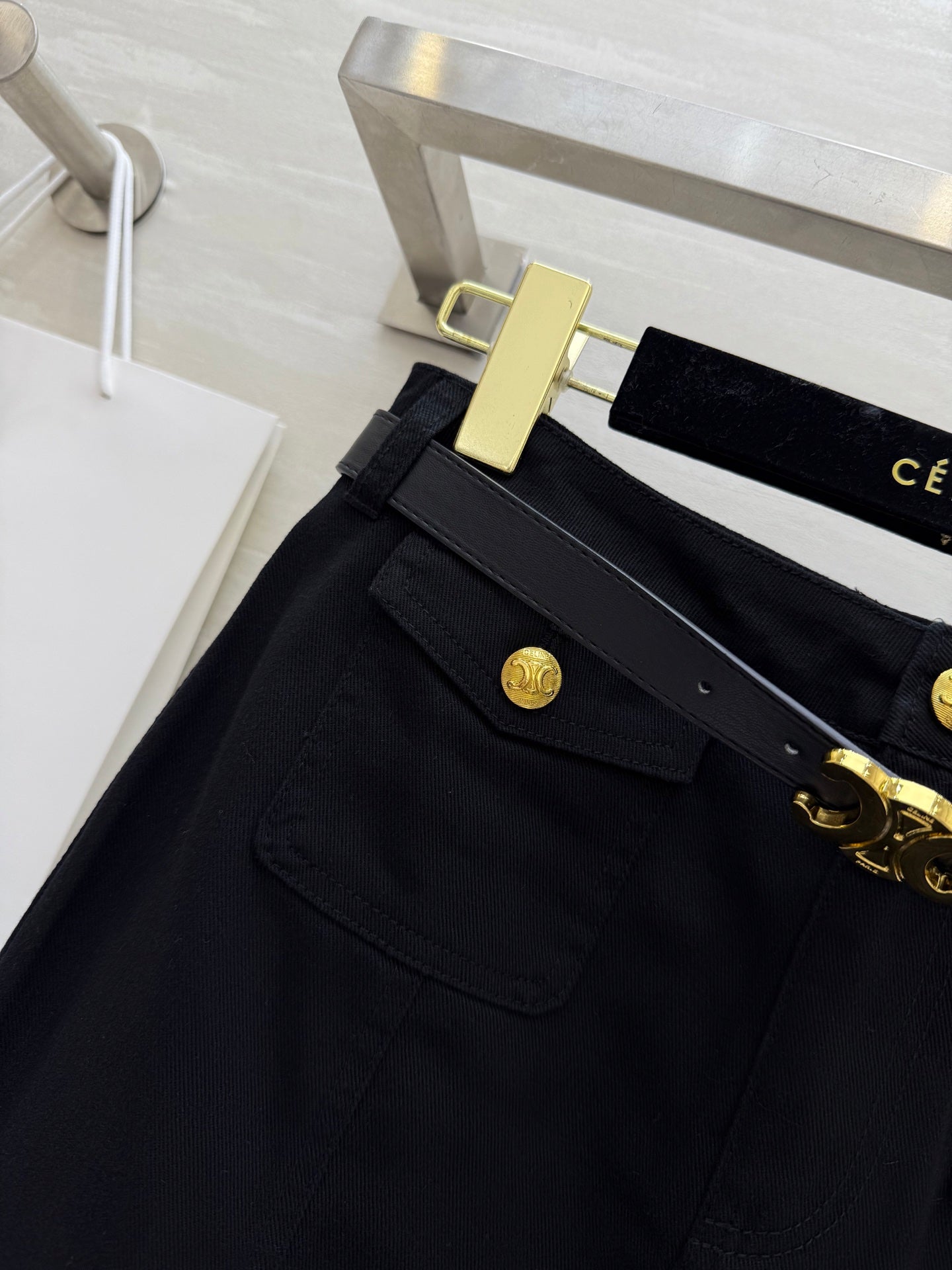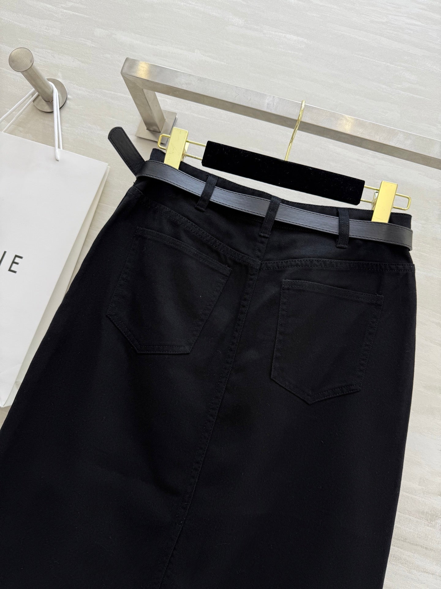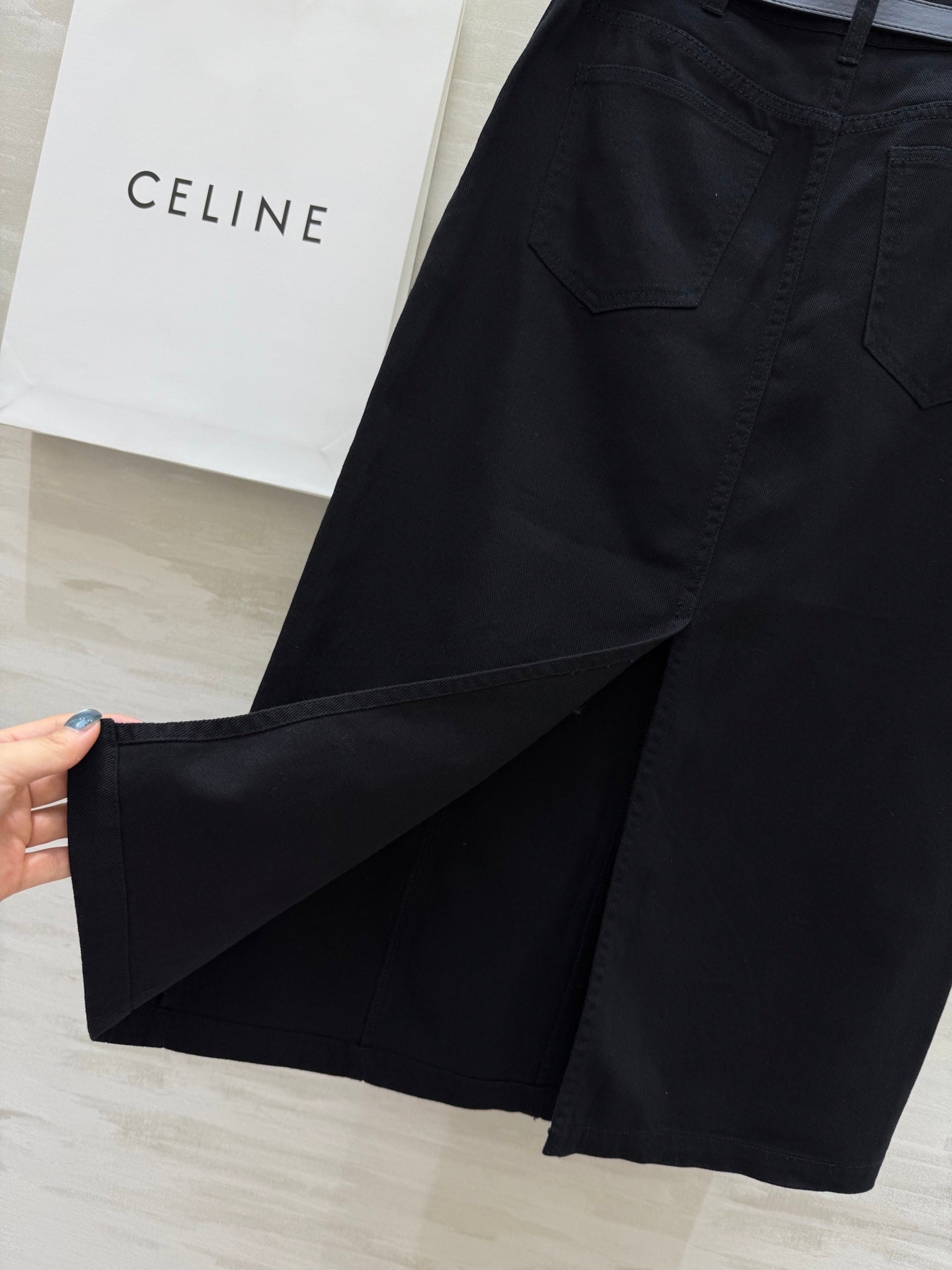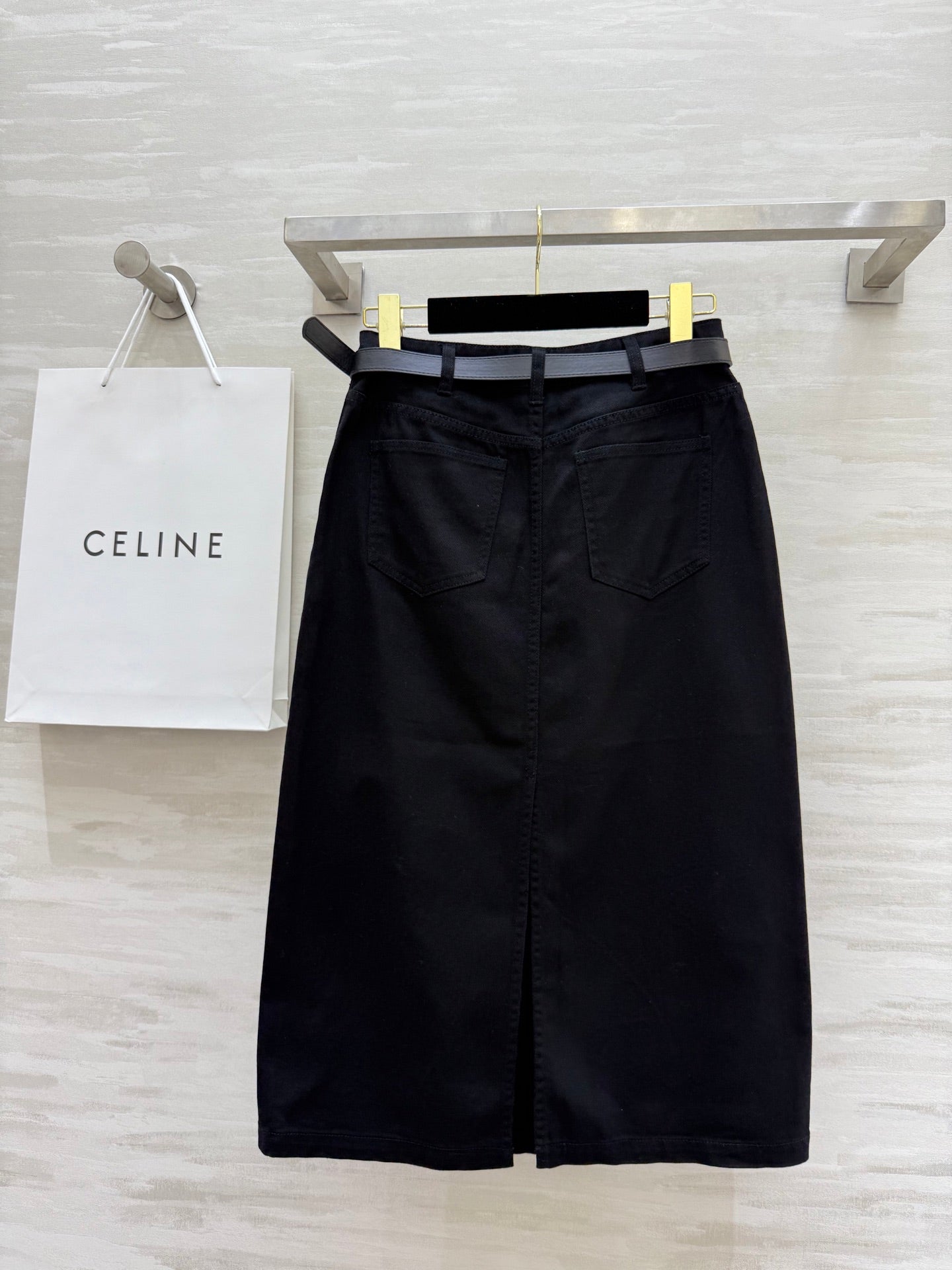 Celine 25 Denim Skirt with Logo Belt Black Cotton