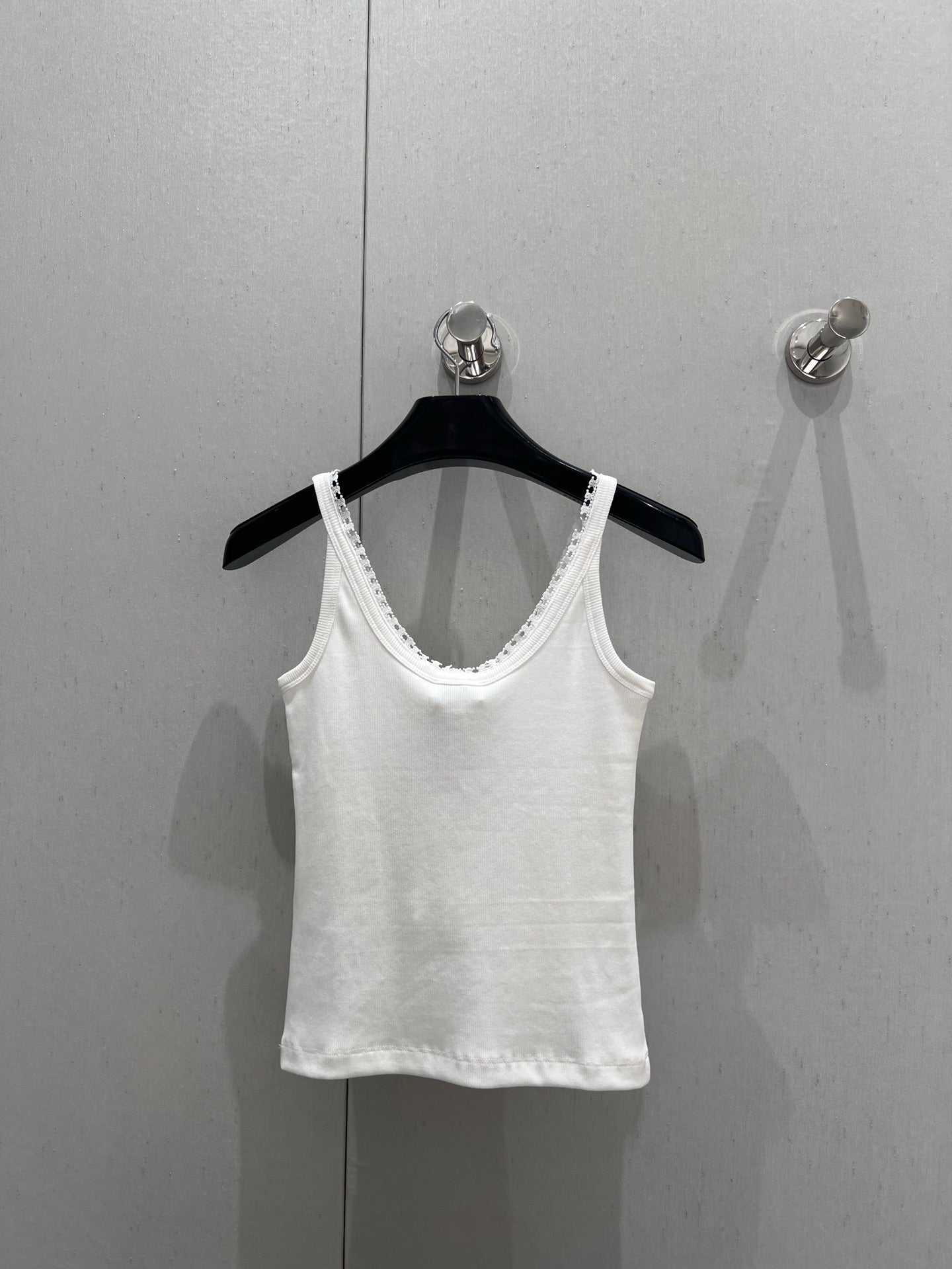 Celine 25 Lace Vest Camisole White Cotton Silk 215160