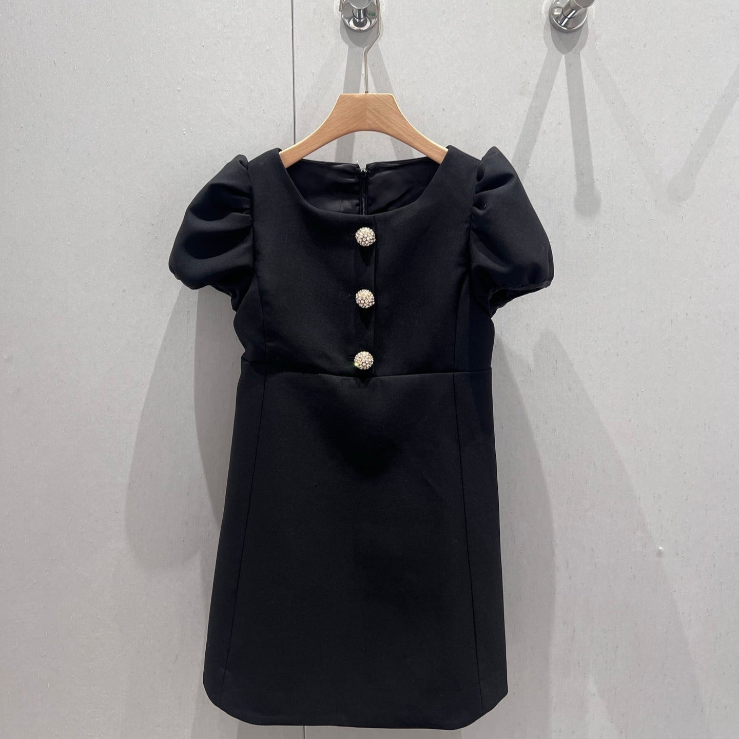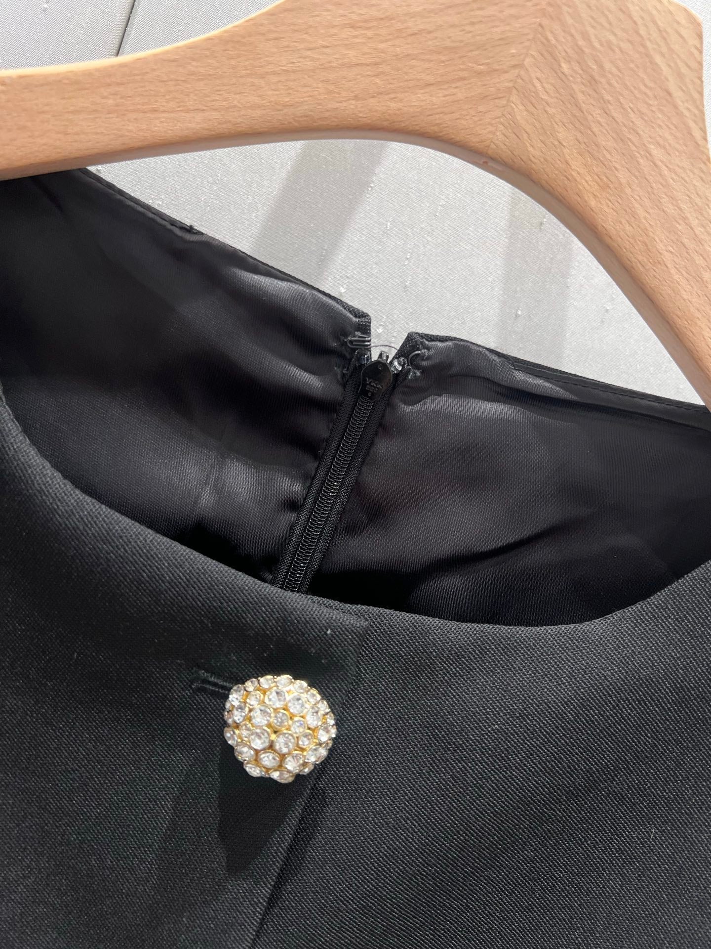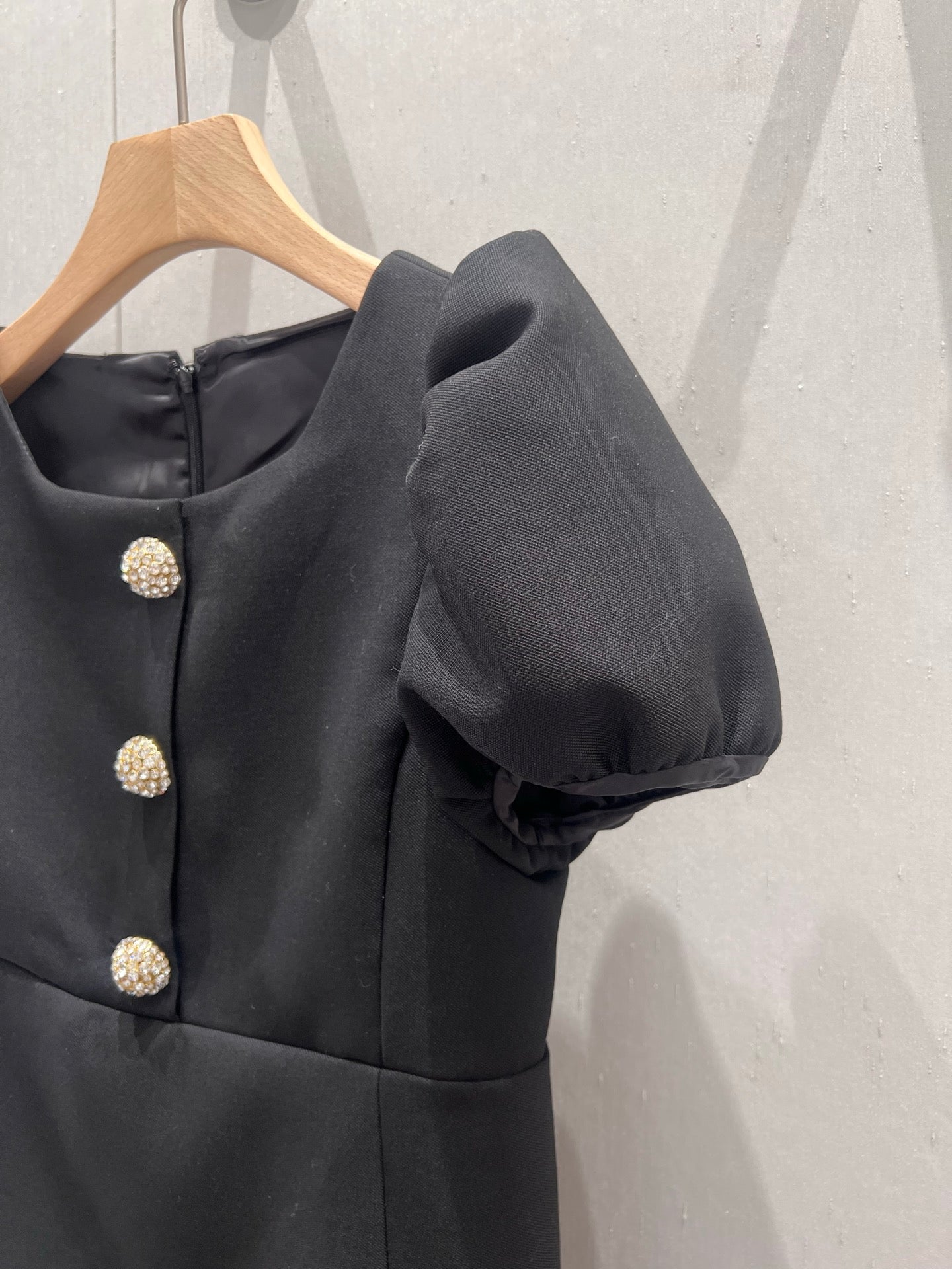 Celine 25 Rhinestone Button Mini Dress Black Wool 220842