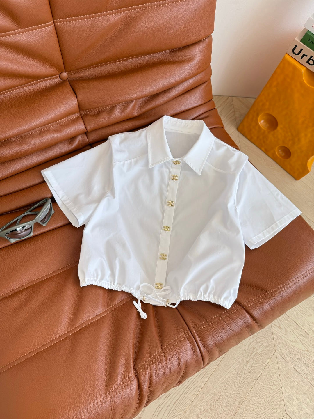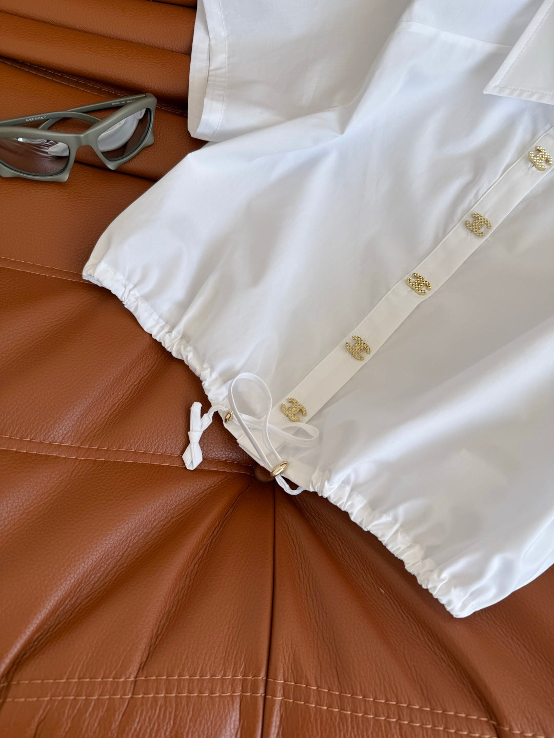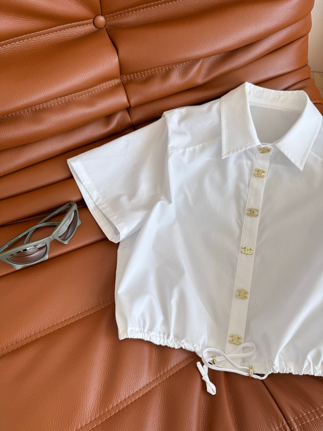 Celine 25 Wide Shoulder with Gold Metal Button White Cotton