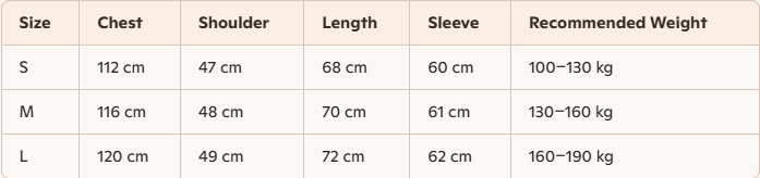 - For more information, please see the size guide below