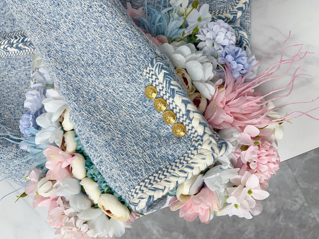 Celine Jacket Light Blue Gold Wool Cotton 290465