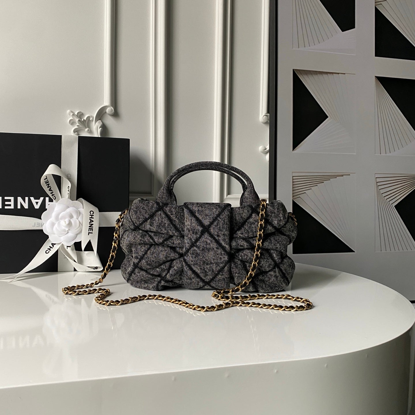 CC 25K Mini Bow Bag 26cm Black Tweed