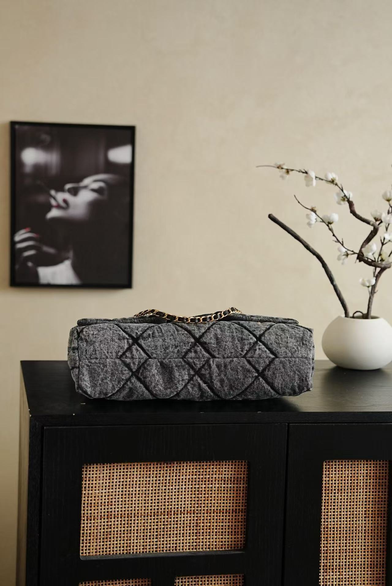 CC 2025 Classic Flap Bag Black Denim Fabric Gold Hardware