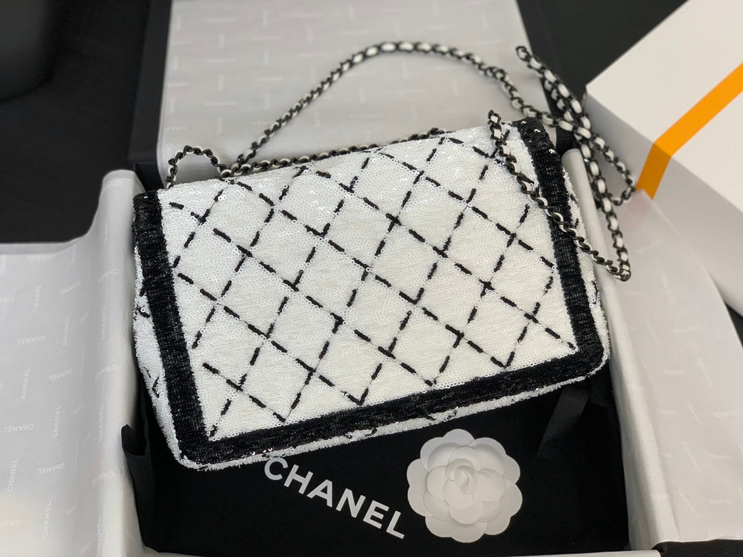 CC 2025 Flap Bag Black White Sequin 298964