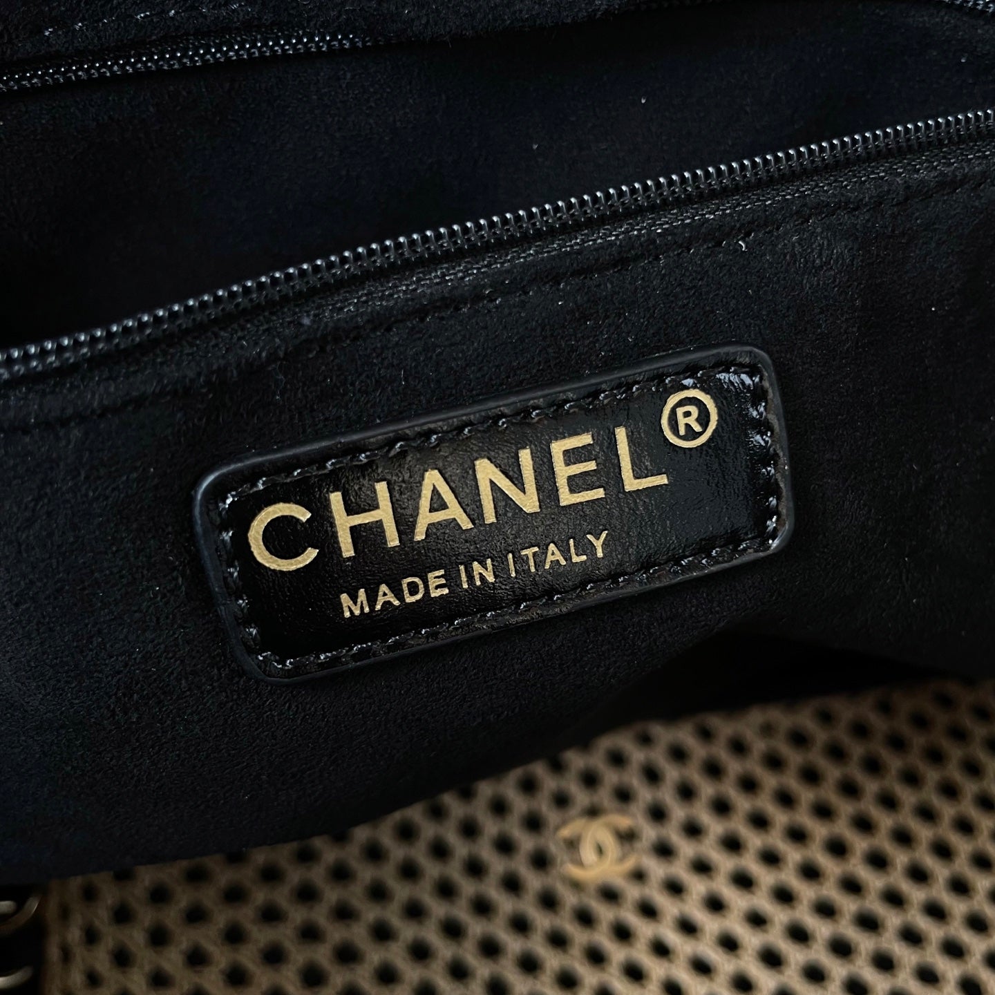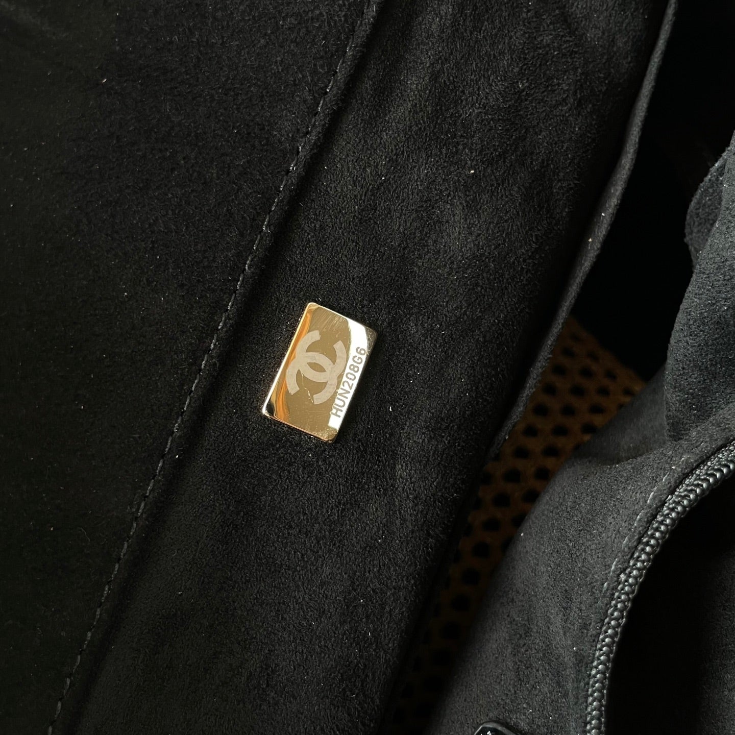 CC 25 Deauville Tote Bag 34cm Beige Black Crochet Suede