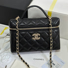 CC 25P Vanity Case 19.5cm Black Calfskin Heart Rhinestone 243613