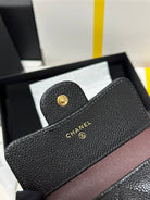 CC CClassic Small Flap Wallet Black Quilted Caviar Gold Buckle 243686