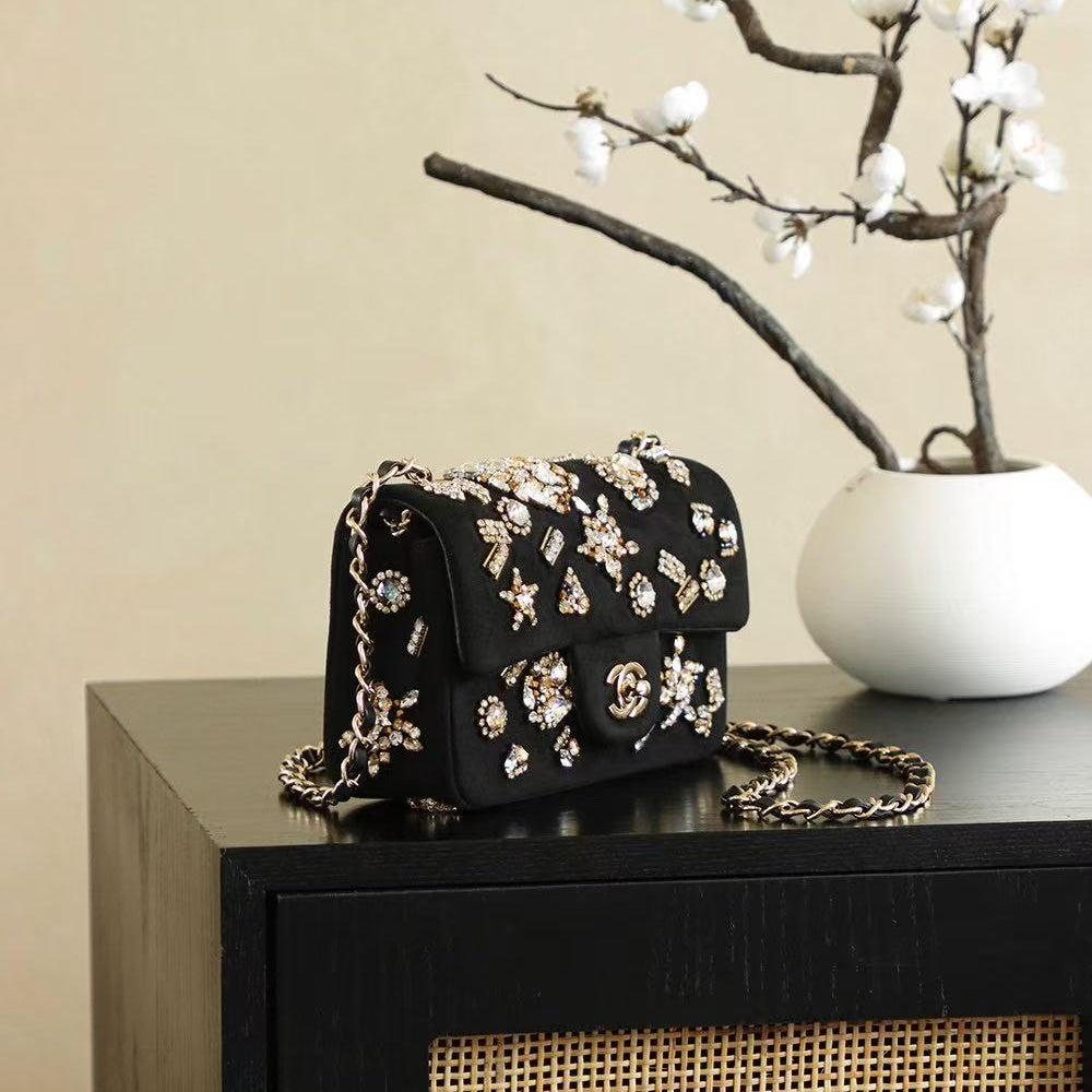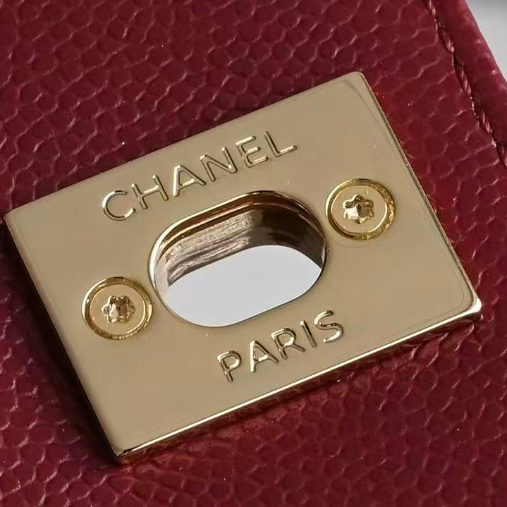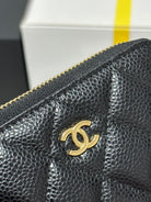 CC Classic Zipped Coin Purse Black Quilted Caviar Gold Buckle 243691