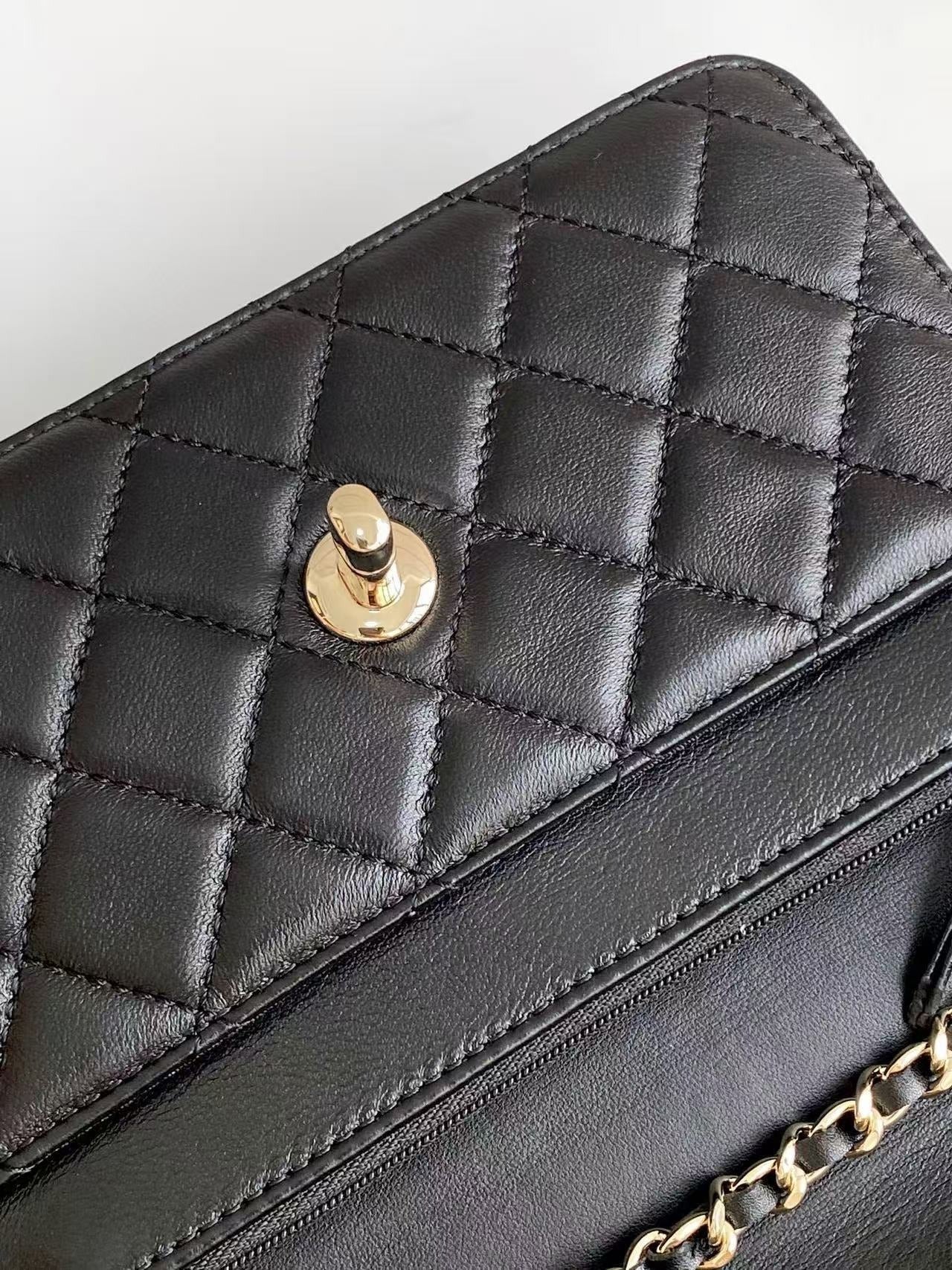 CC FLAP BAG 19 IN BLACK CALFSKIN GOLD HARDWARE