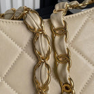 CC HOBO BAG 24 IN BEIGE CALFSKIN GOLD DOUBLE C THICK CHAIN