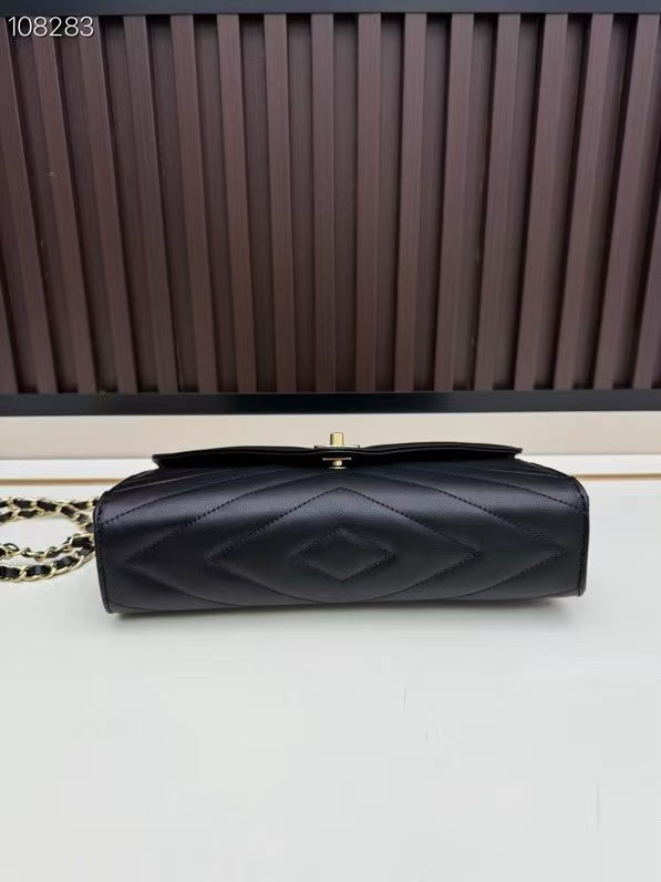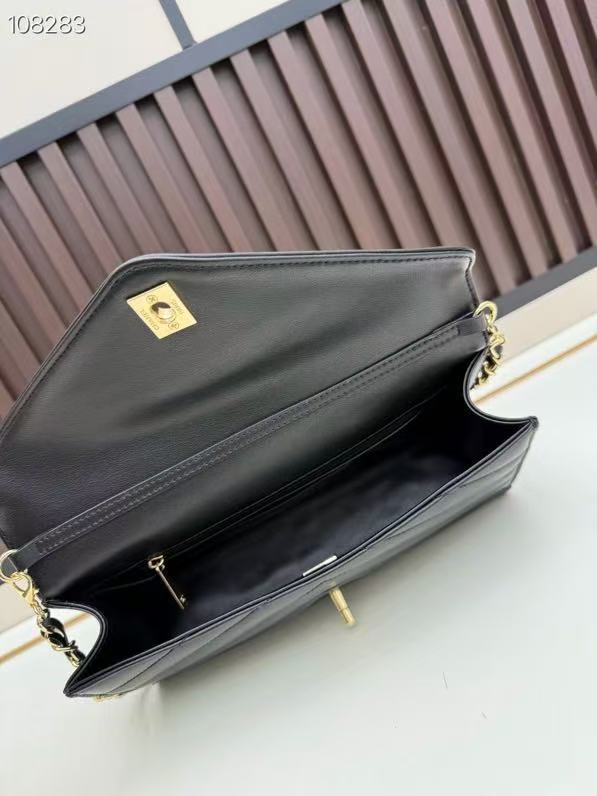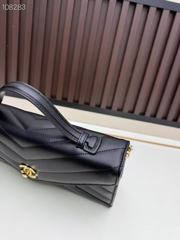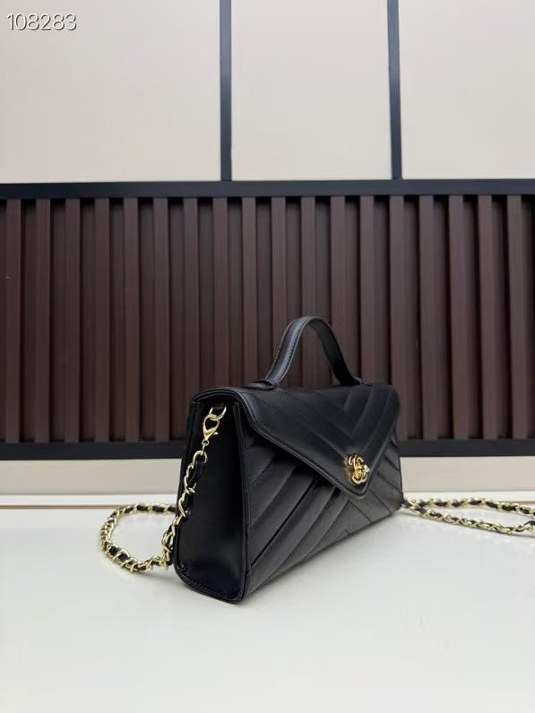 CC Large Flap Bag With Handles Black Goat Leather