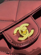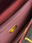 CC Large Flap Bag With Top Handle Burgundy Metallic Calfskin GHW