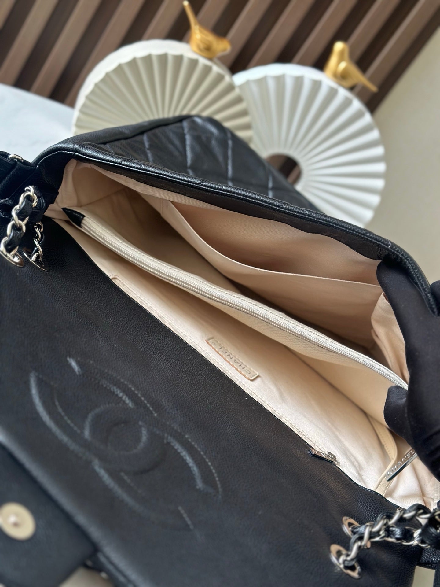 CC Messenger Weekender Flap Tote Bag Black Caviar SHW