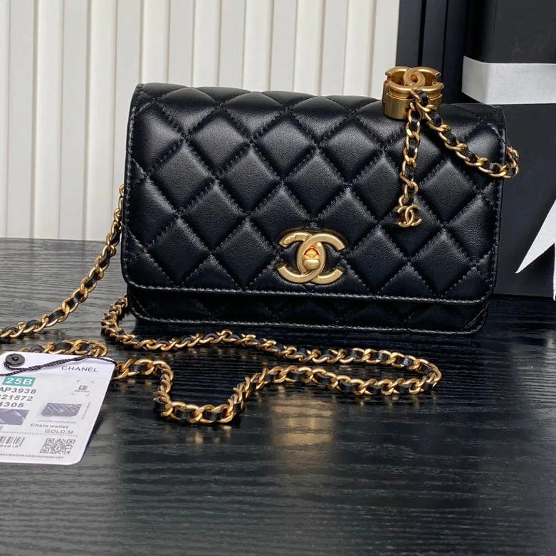 Chanel 2025 Bag Black Gold 19cm Lambskin 269234