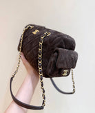 Chanel 2025 Bowling Bag 24cm Dark Brown Suede 345137