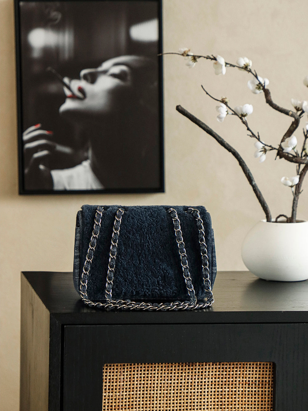 Chanel 2025 Dallas Shearling Star Bag 21cm Navy Blue Wool Denim 318220
