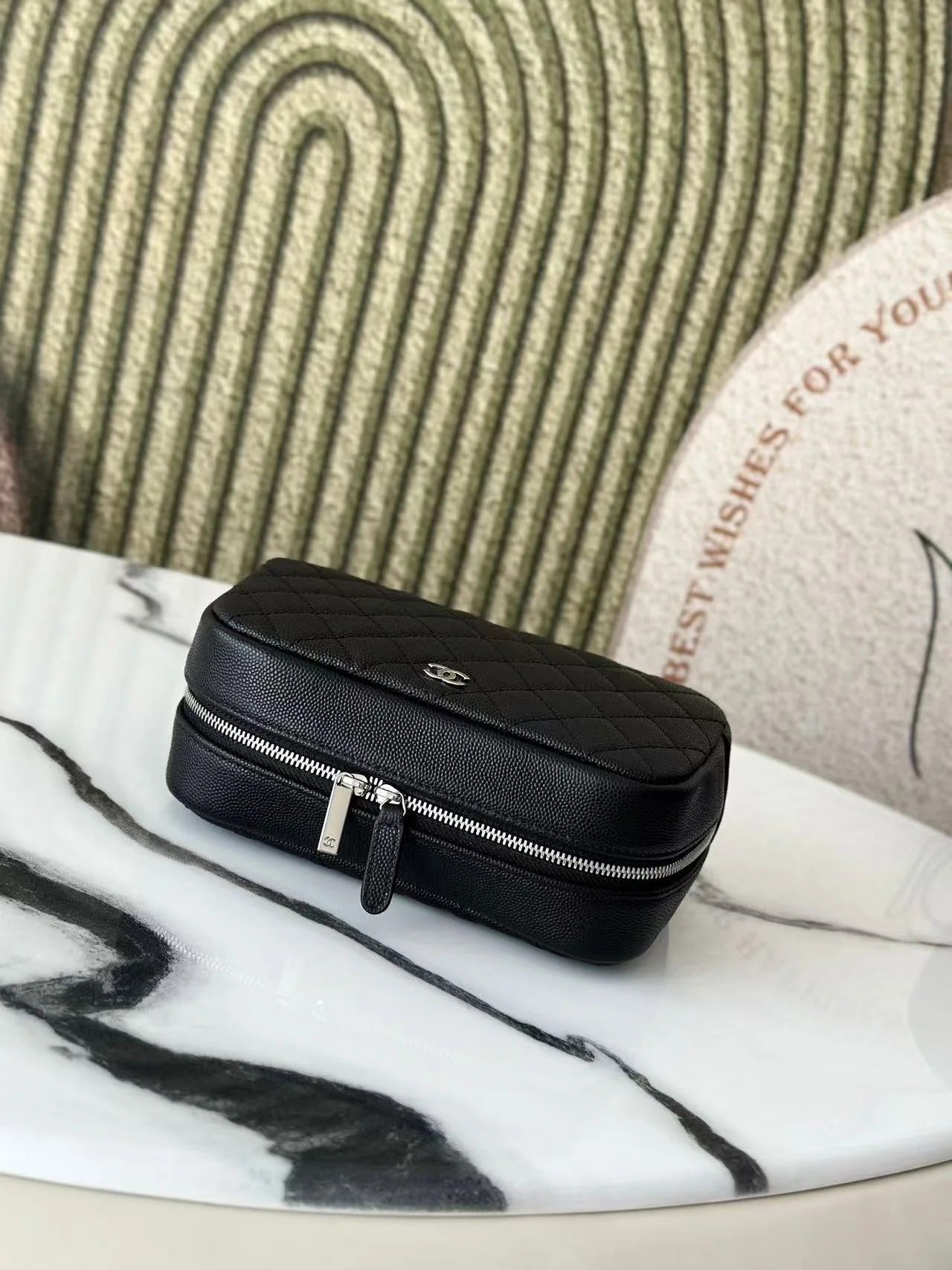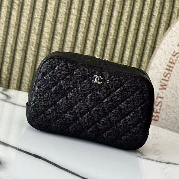 Chanel 2026 Quilted Medium Curvy Pouch Black Caviar Leather