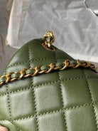 Chanel 25 Pearl Crush Square Flap Bag 20cm Dark Green Lambskin