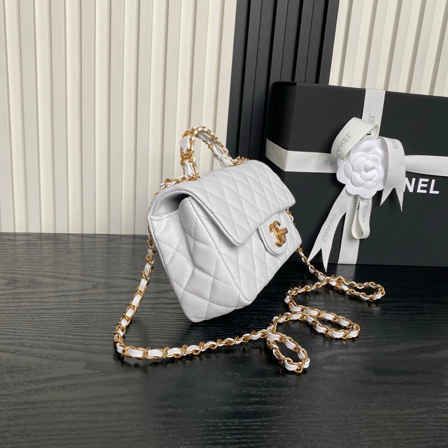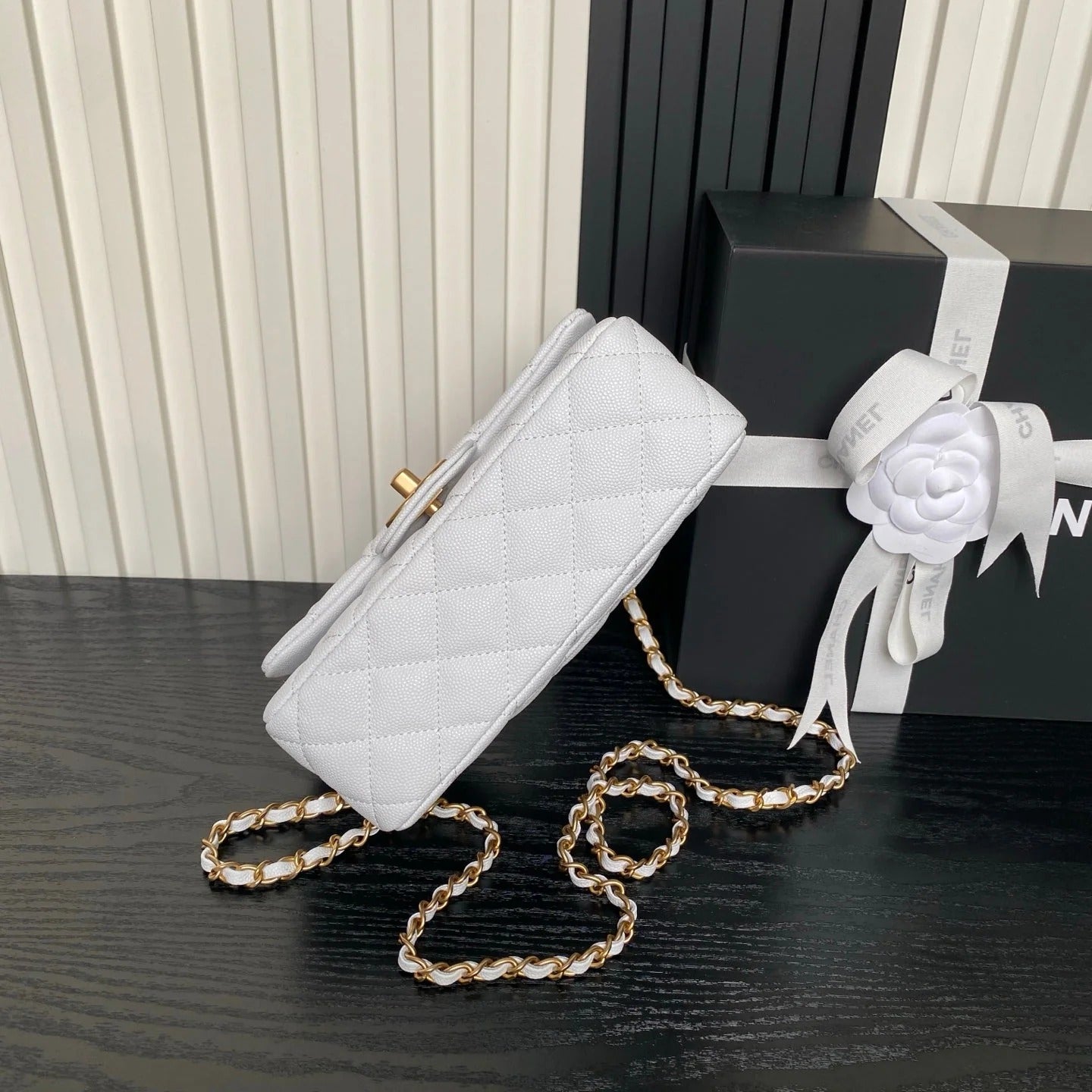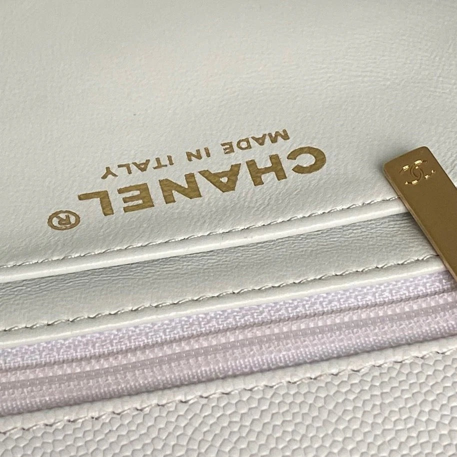 CHANEL 25S FLAP BAG 19 IN WHITE CALFSKIN GOLD HARDWARE