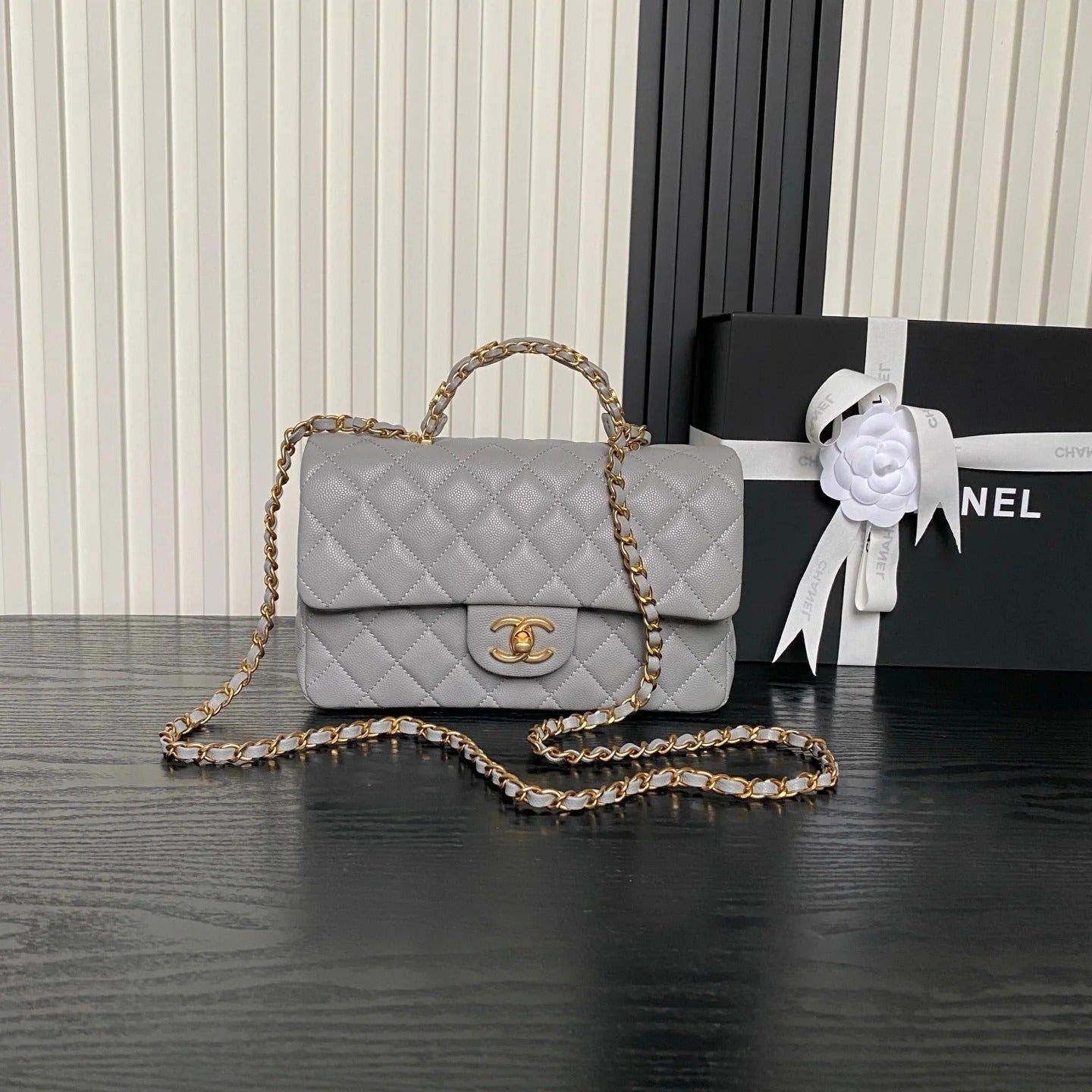 CHANEL 25S FLAP BAG 22 IN CHARCOAL GRAY CALFSKIN GOLD HARDWARE