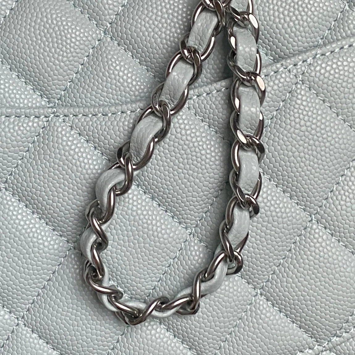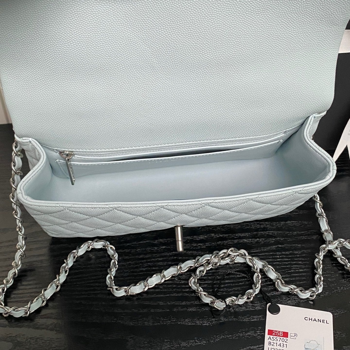 CHANEL 25S FLAP BAG 22 IN SLATE BLUE CALFSKIN SILVER HARDWARE
