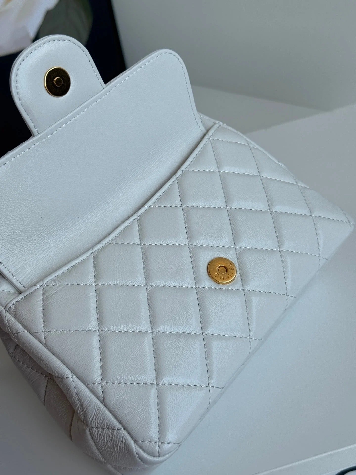 CHANEL 25S HOBO BAG 19 CM IN WHITE LAMBSKIN WITH GOLD HARDWARE