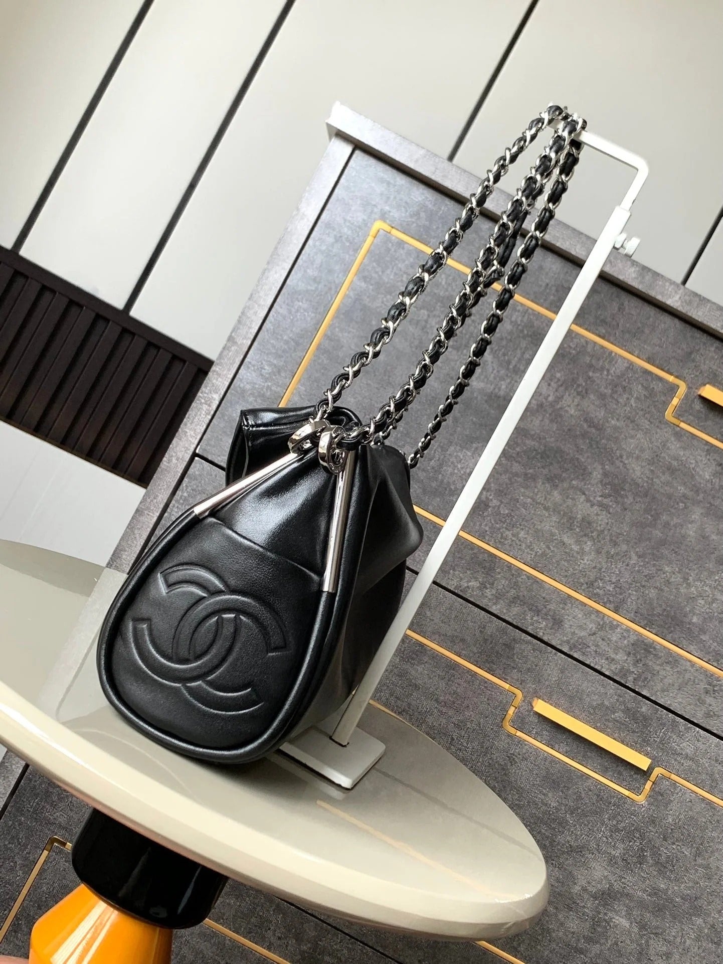 CHANEL 25S HOBO BAG 30 CM IN BLACK SMOOTH CALFSKIN