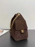 CHANEL 25S HOBO BAG 30 CM IN DARK BROWN SUEDE WITH GOLD HARDWARE