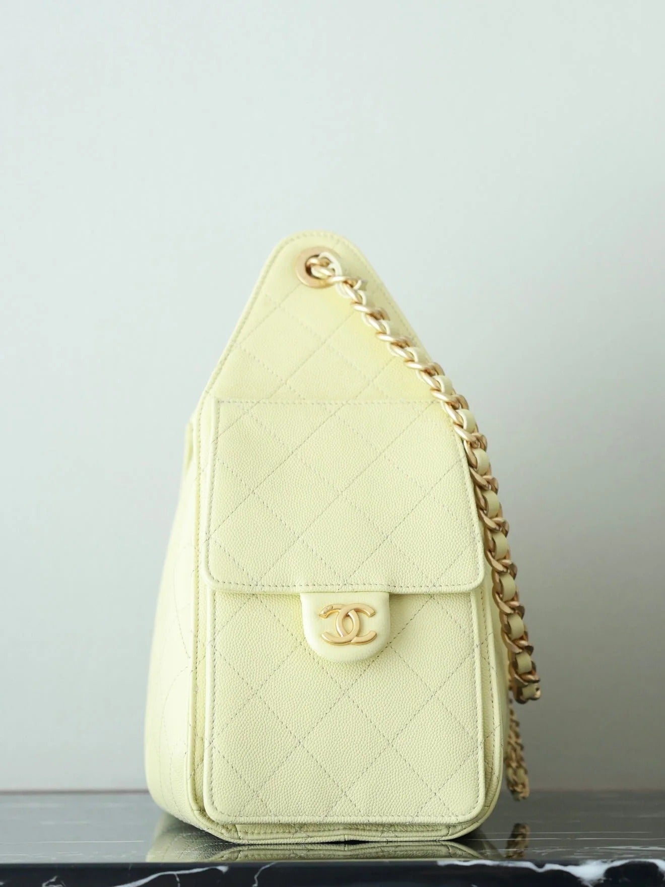CHANEL 25S HOBO BAG 30 CM IN PASTEL YELLOW LAMBSKIN WITH GOLD HARDWARE