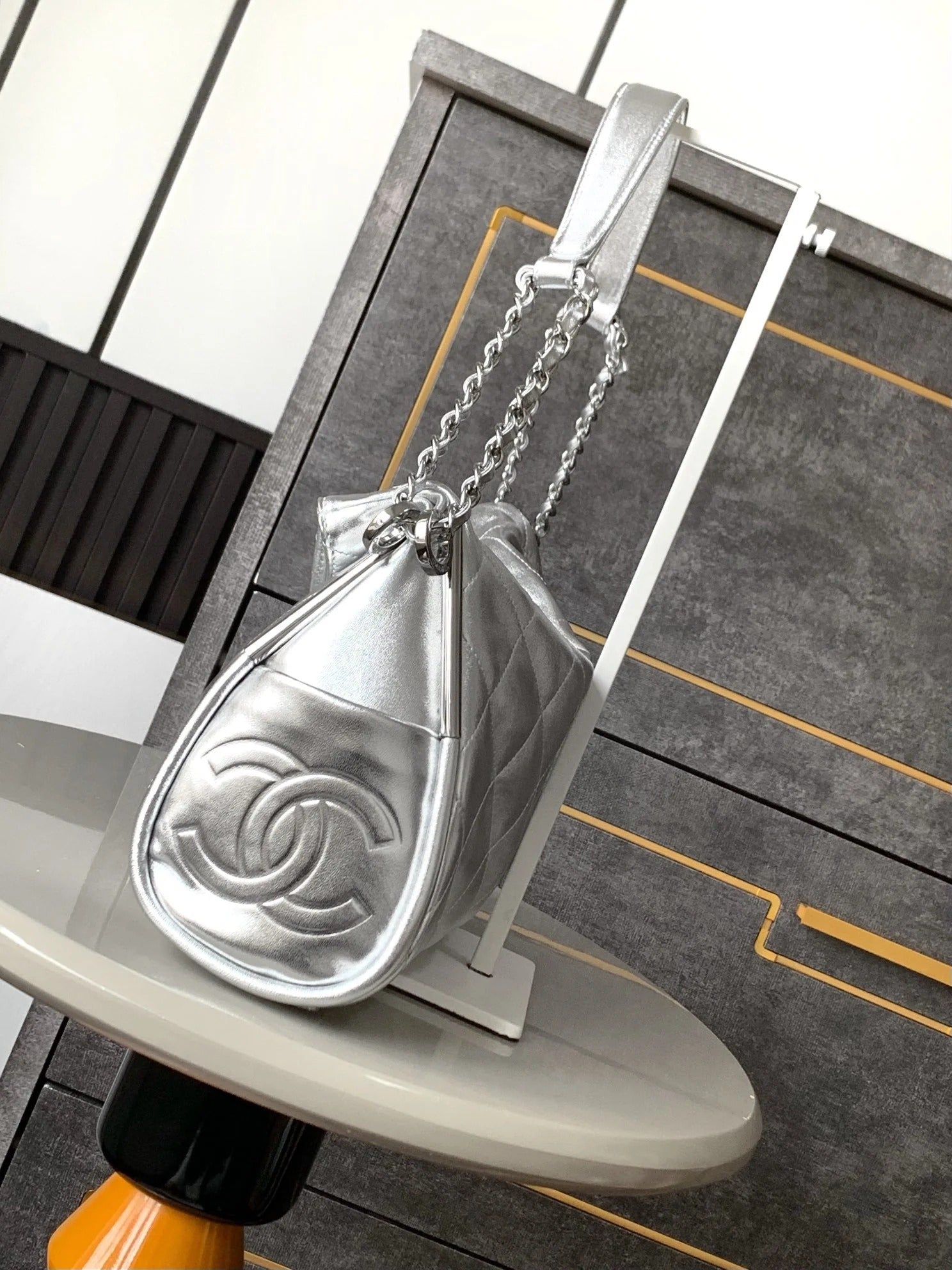 CHANEL 25S HOBO BAG 30 CM IN SILVER LAMBSKIN