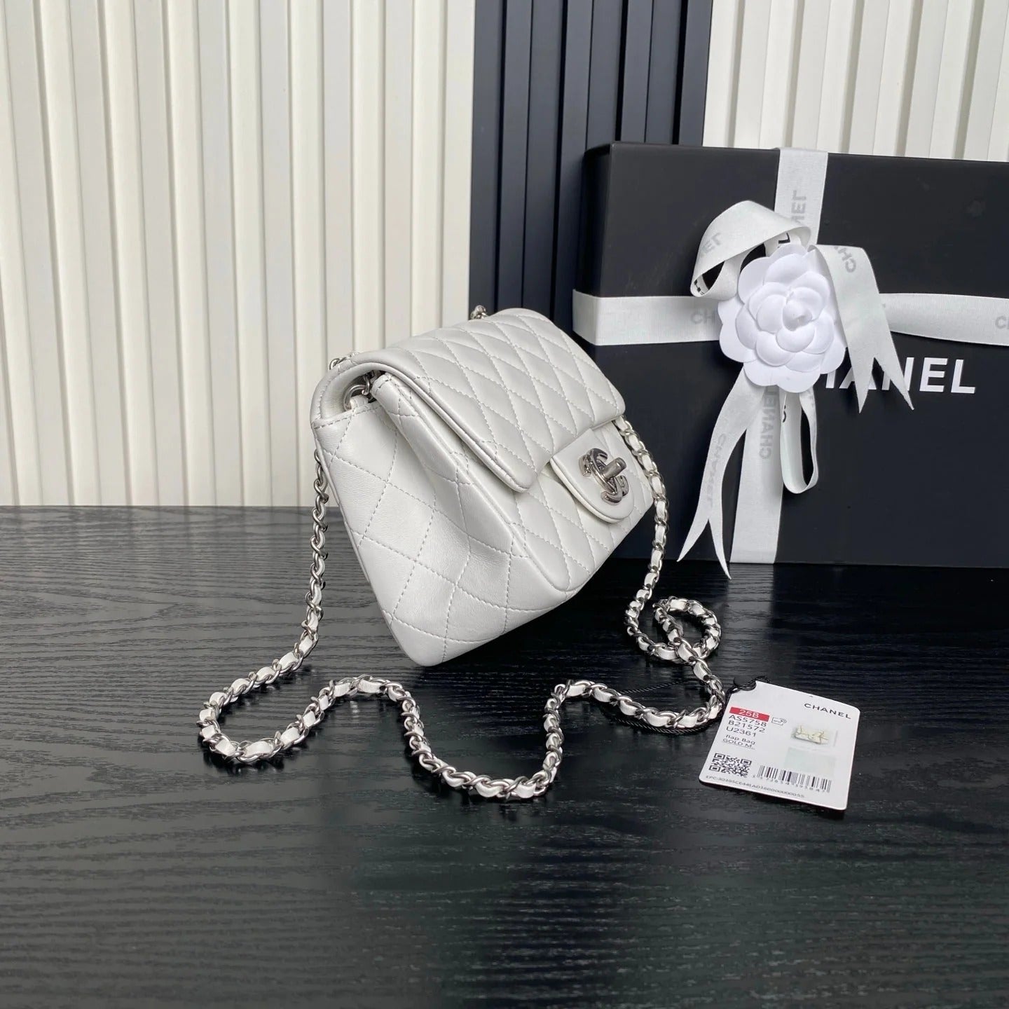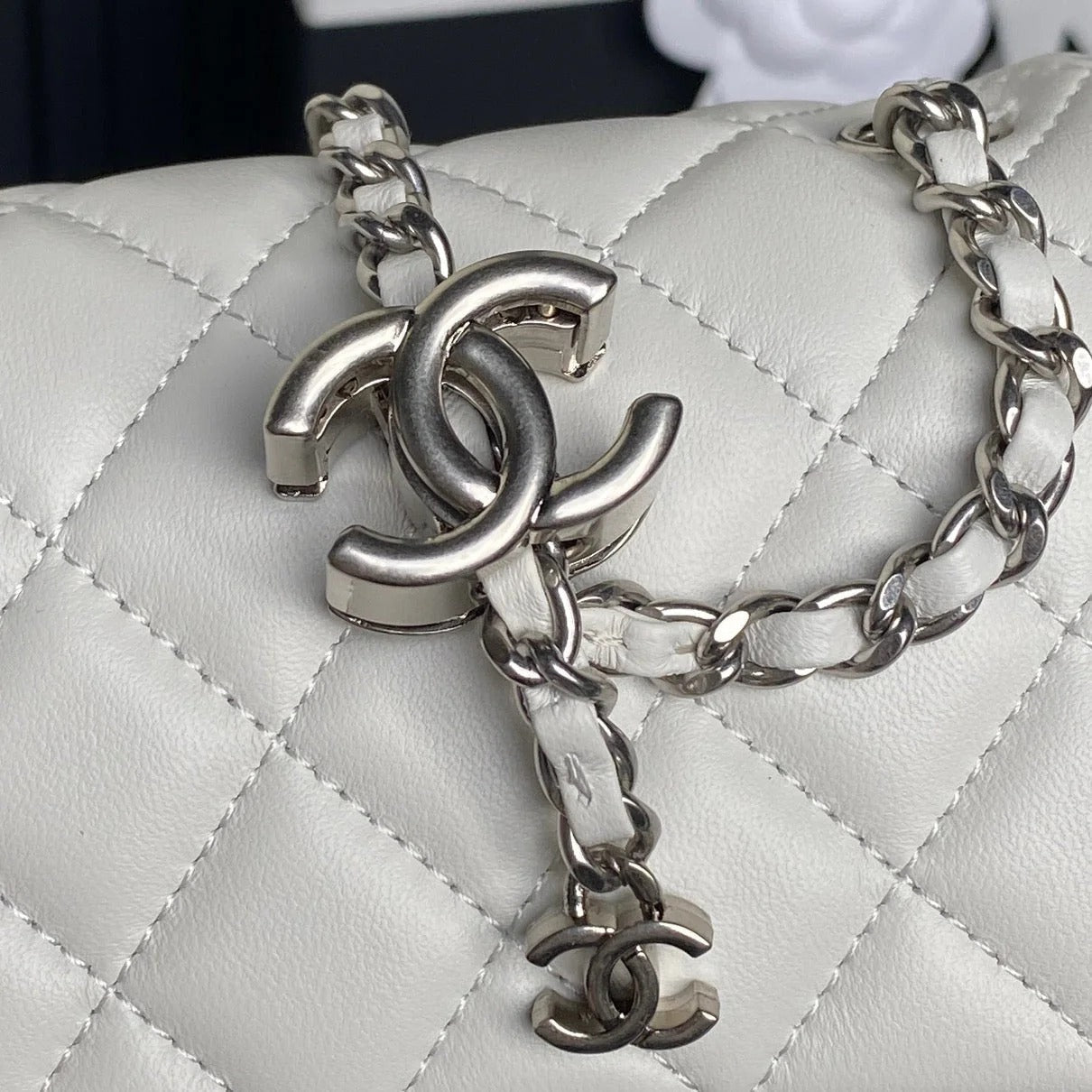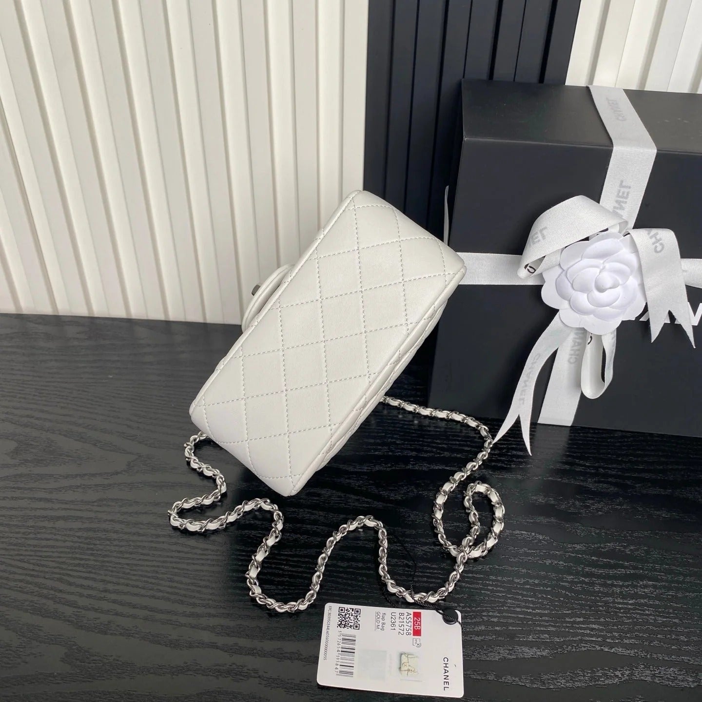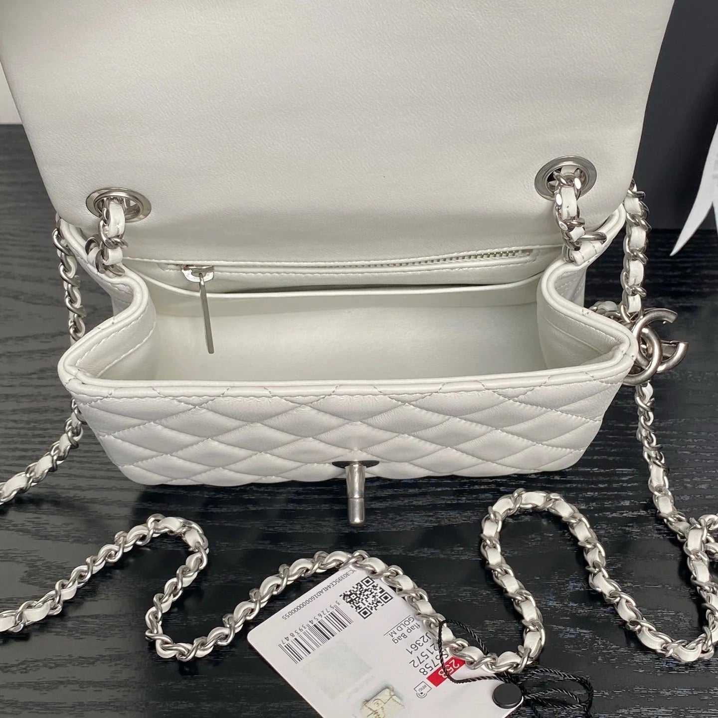 CHANEL 25S MINI FLAP BAG 18 IN WHITE CALFSKIN