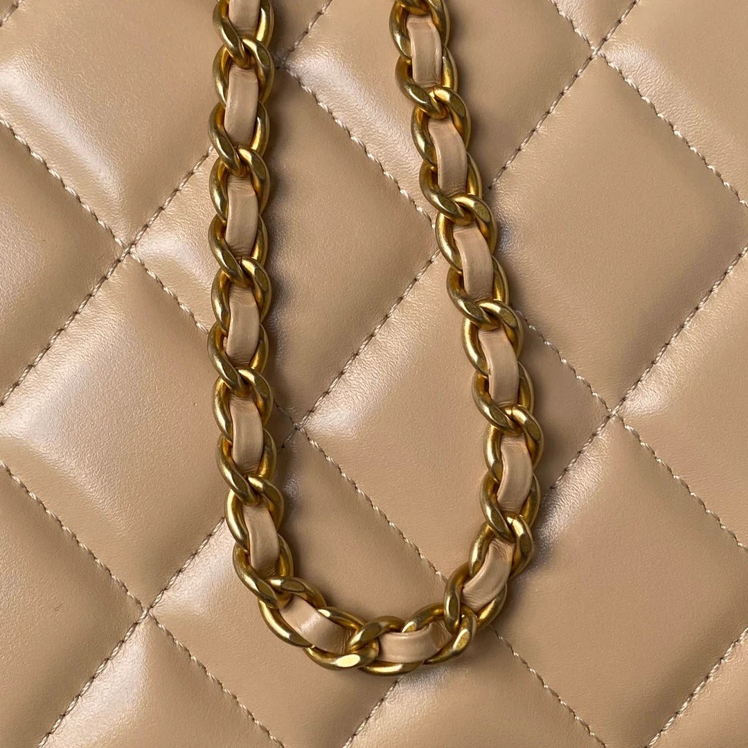 CHANEL 25S MINI FLAP BAG 22 IN TAN BROWN CALFSKIN GOLD HARDWARE