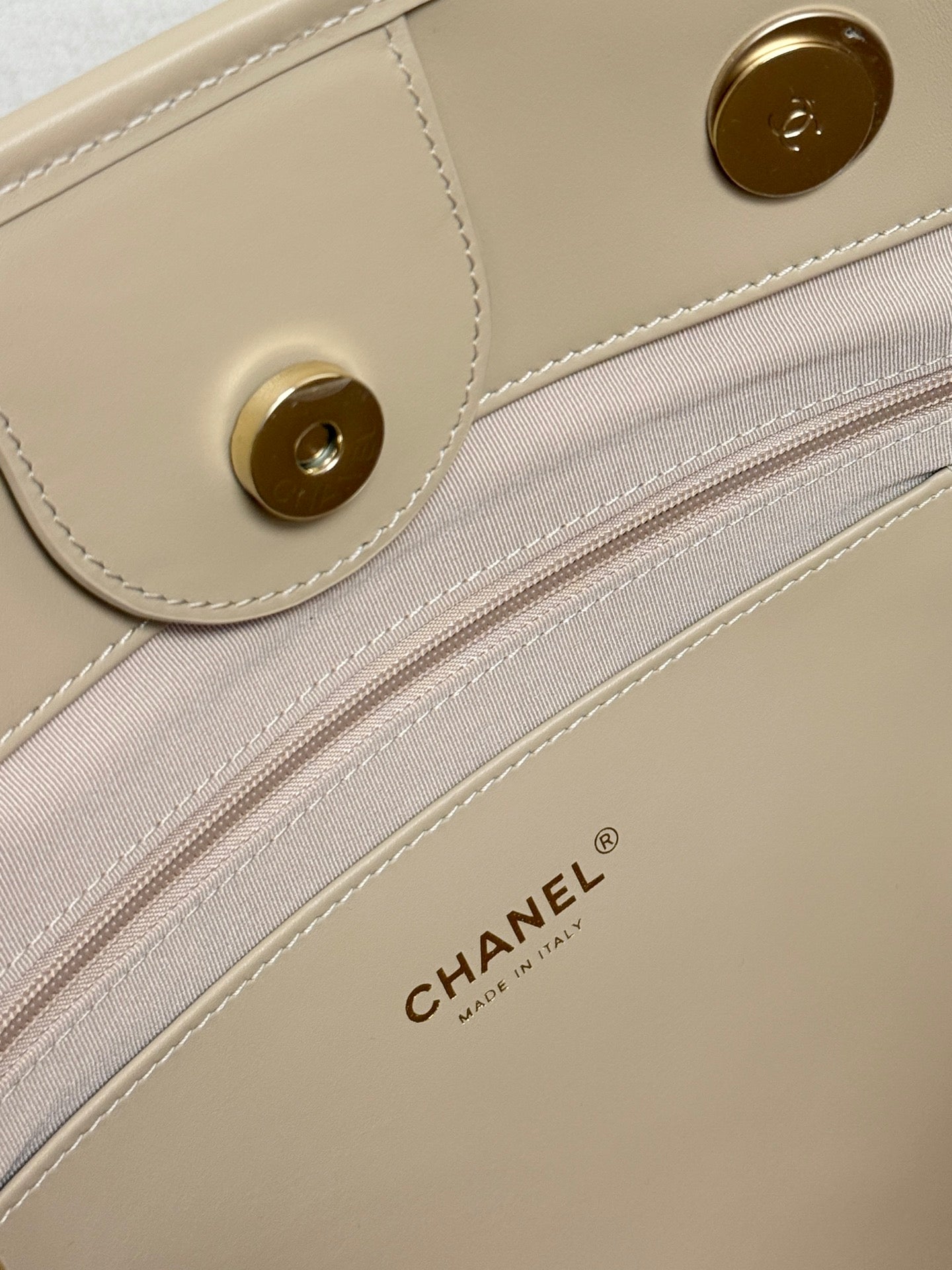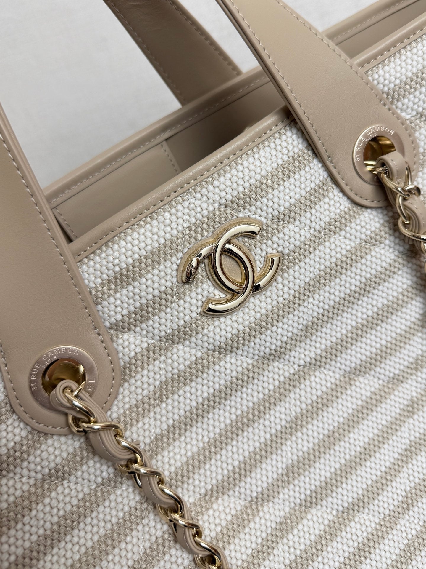Chanel 26 Woven Beach Bag 46 White Light Beige Canvas Leather