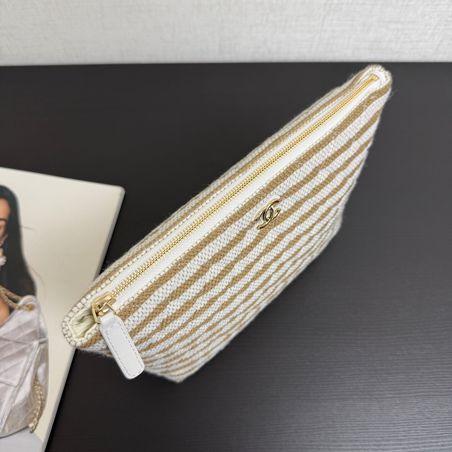 Chanel 26 Woven Clutch 19 White Khaki Canvas
