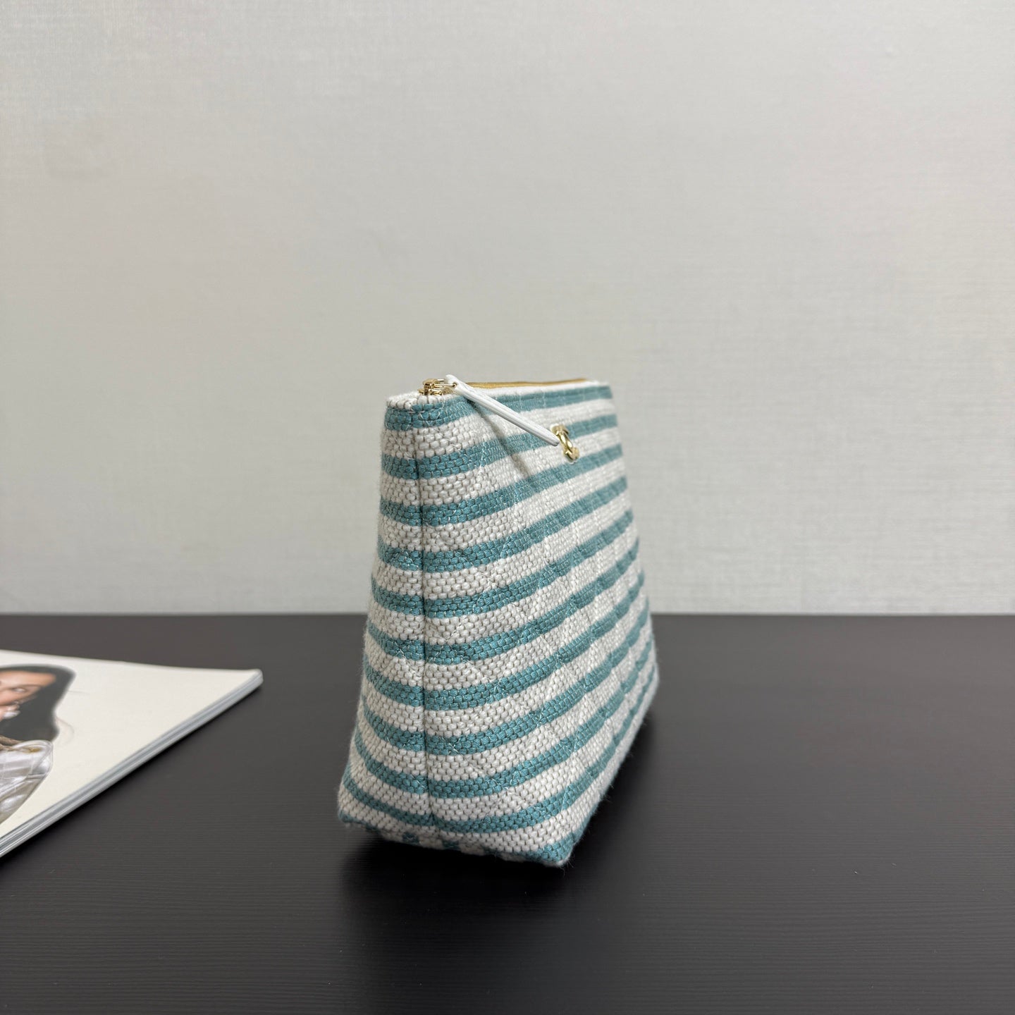 Chanel 26 Woven Clutch 19 White Light Blue Canvas