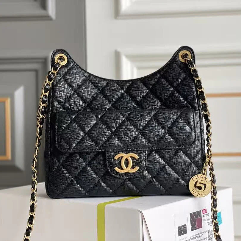 Chanel Hobo Bag Black Gold Calfskin