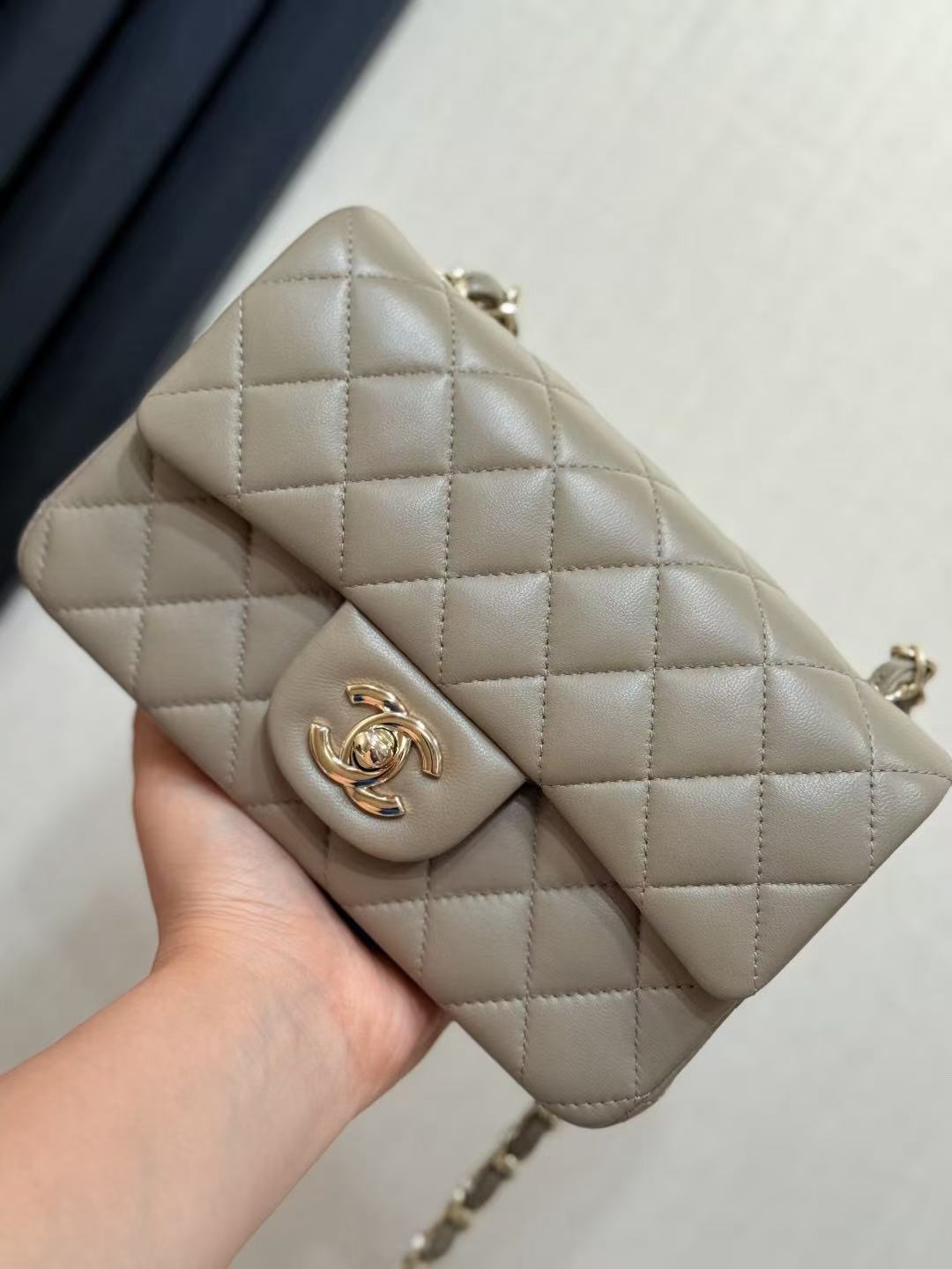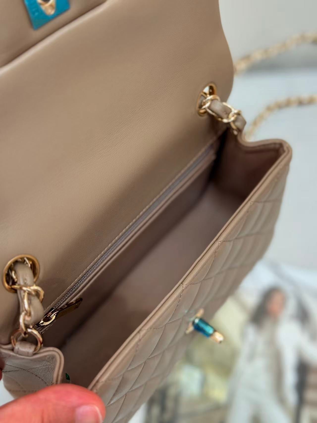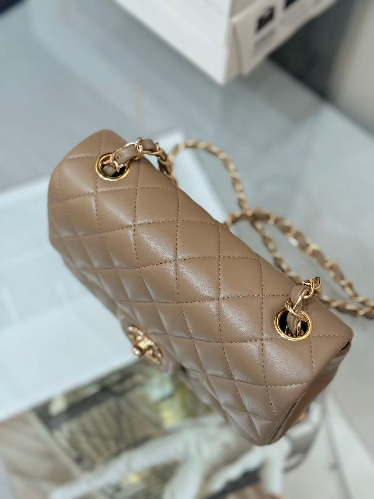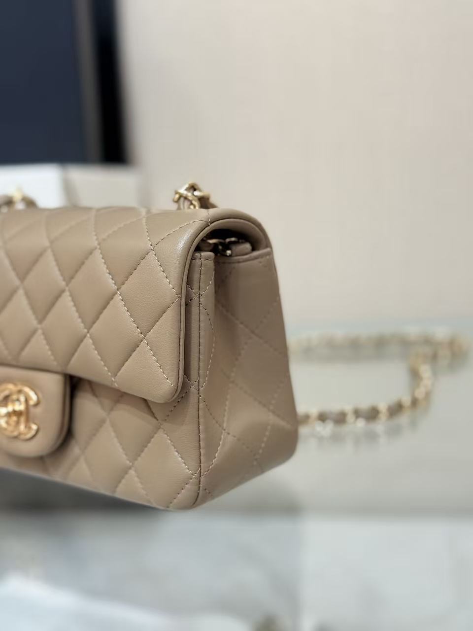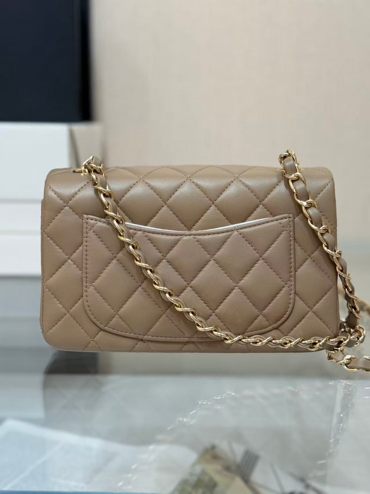 Medium Classic Flap Bag 23cm Light Beige Lambskin Gold Hardware