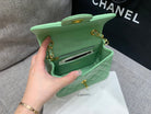 MINI SQUARE FLAP BAG 17CM LIGHT GREEN LAMBSKIN GOLD HARDWARE