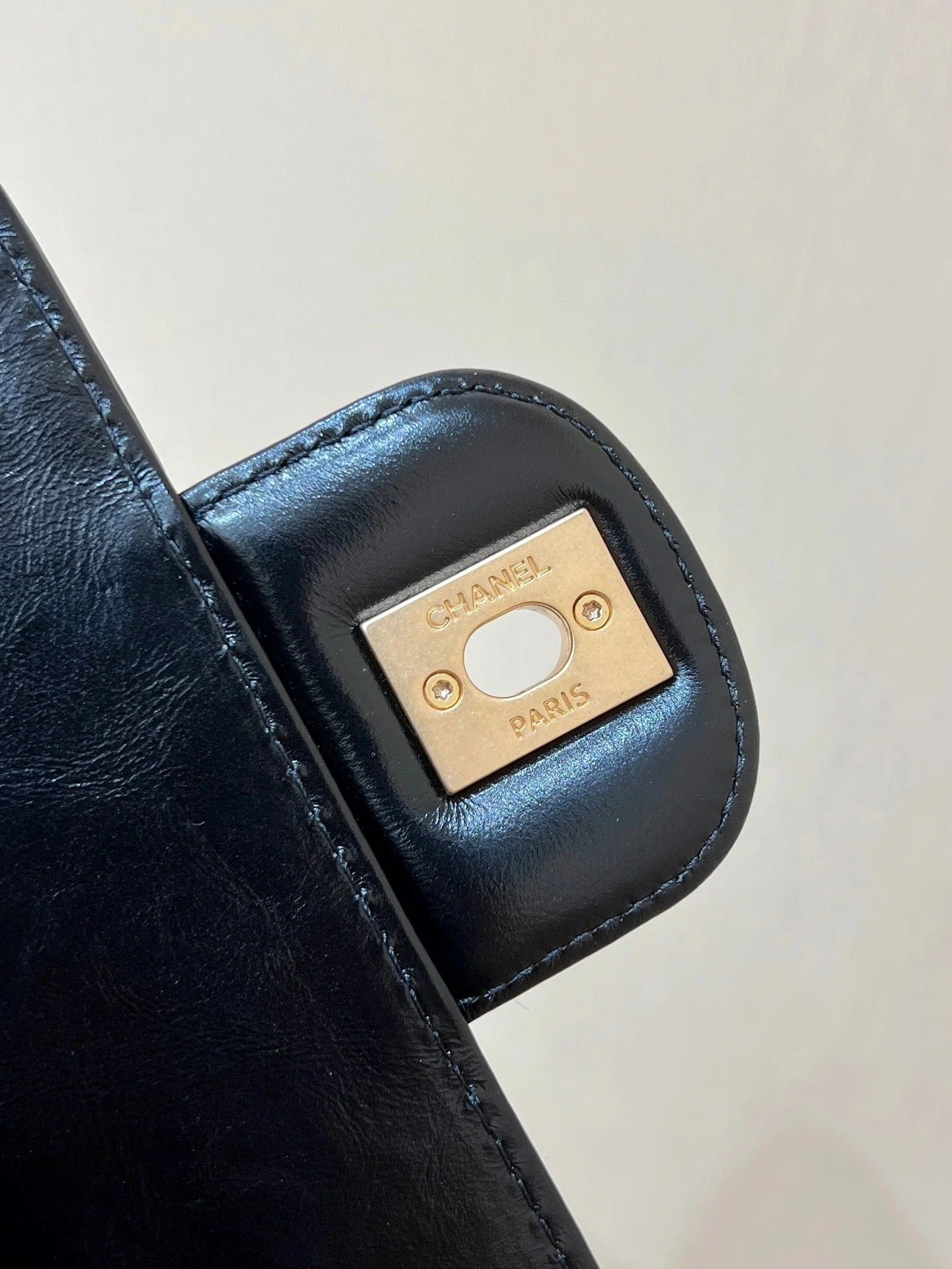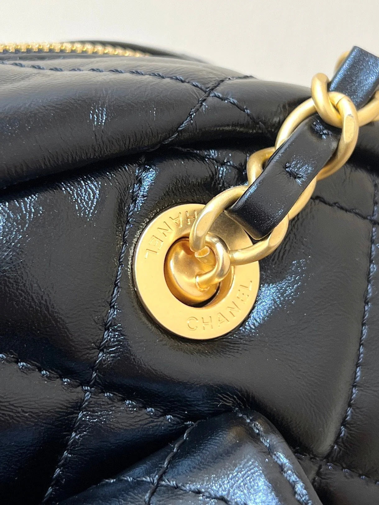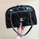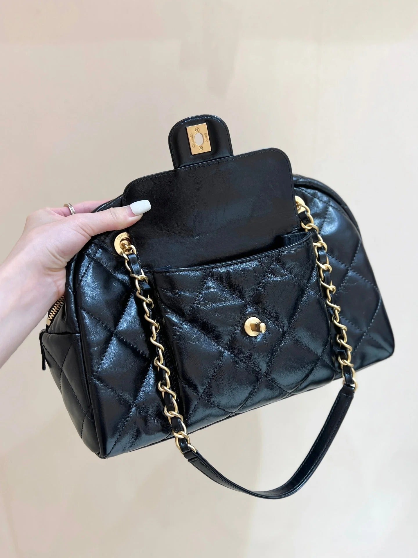 QUILTED BOWLING BAG 33 IN BLACK LAMBSKIN GOLD HARDWARE