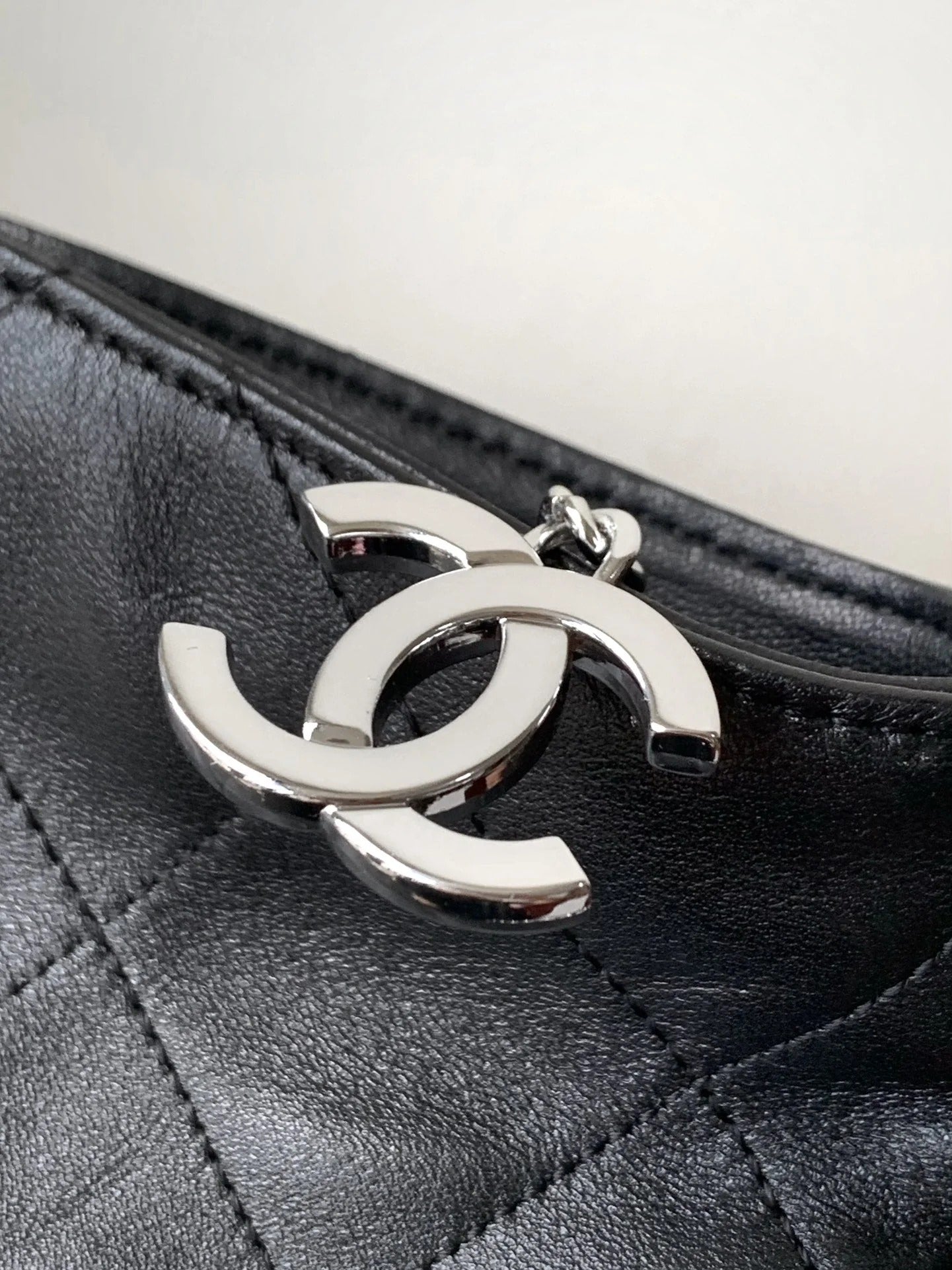 SHOULDER BAG 40 IN BLACK SOFT LAMBSKIN EMBOSSED LOGO SILVER HARDWARE