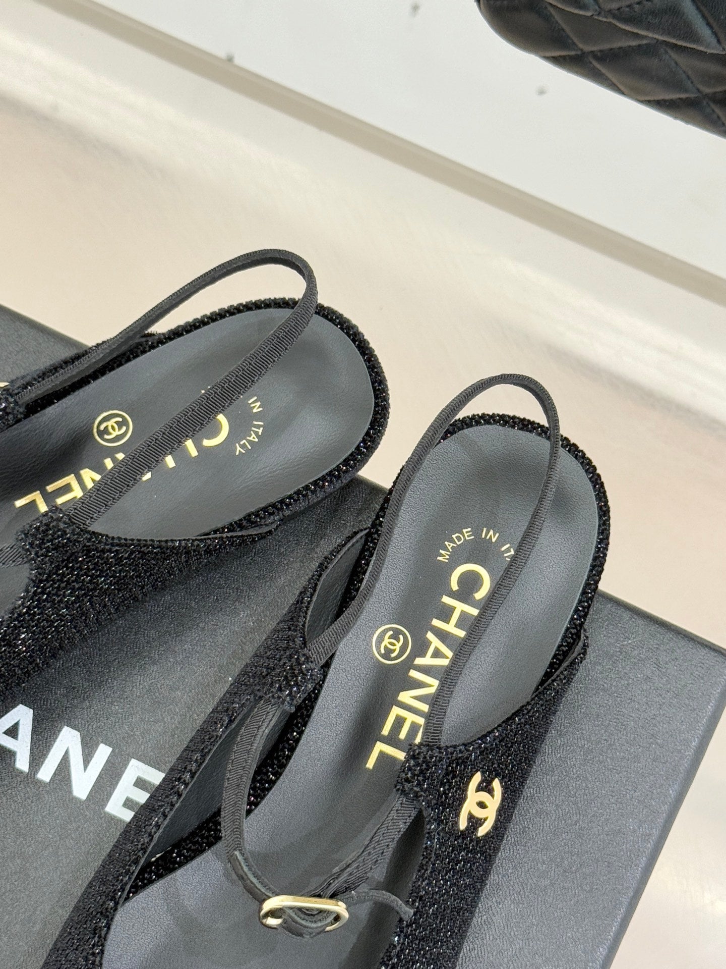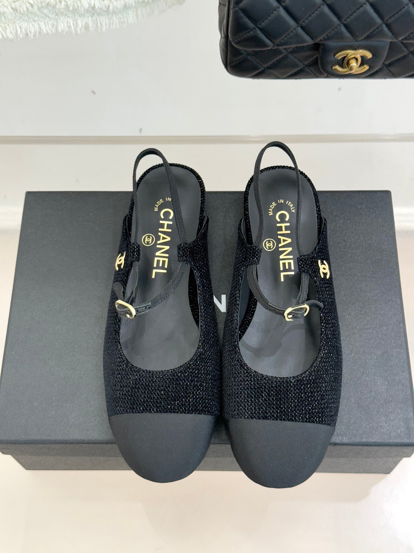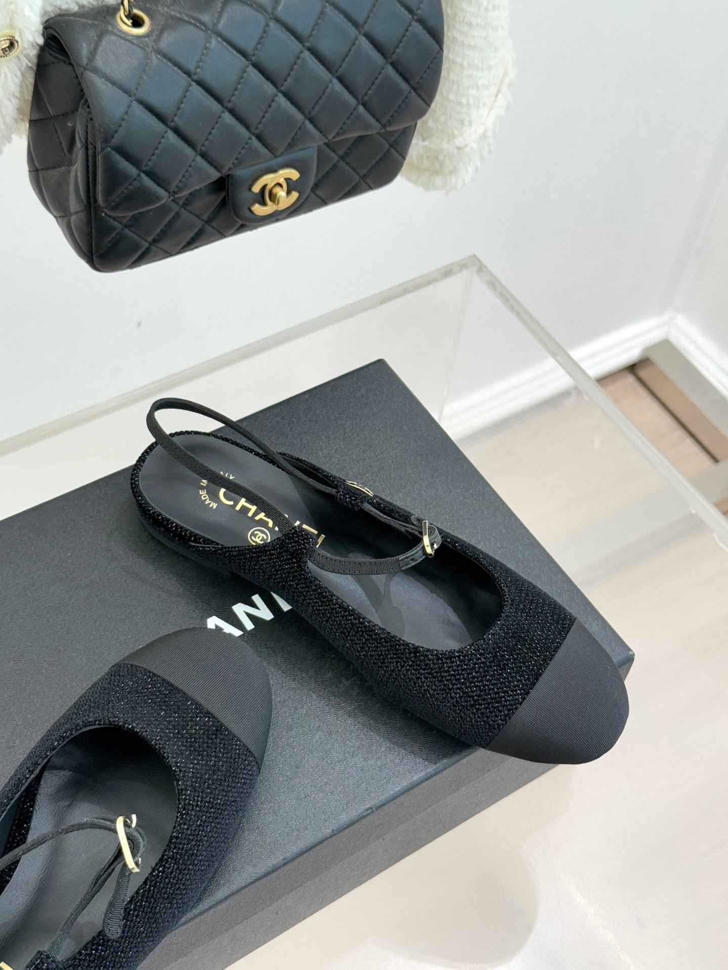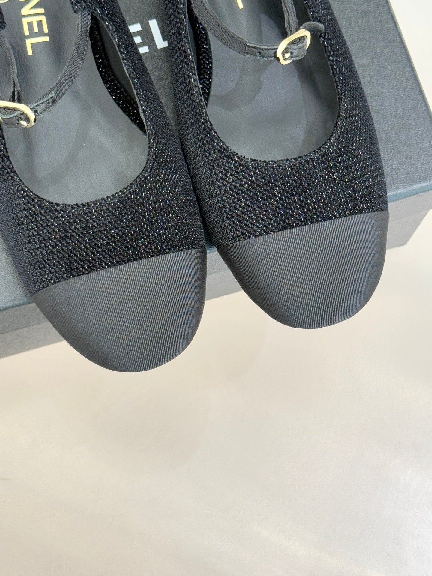 26C Two-tone Double C Flat Shoes Black Tweed 557690