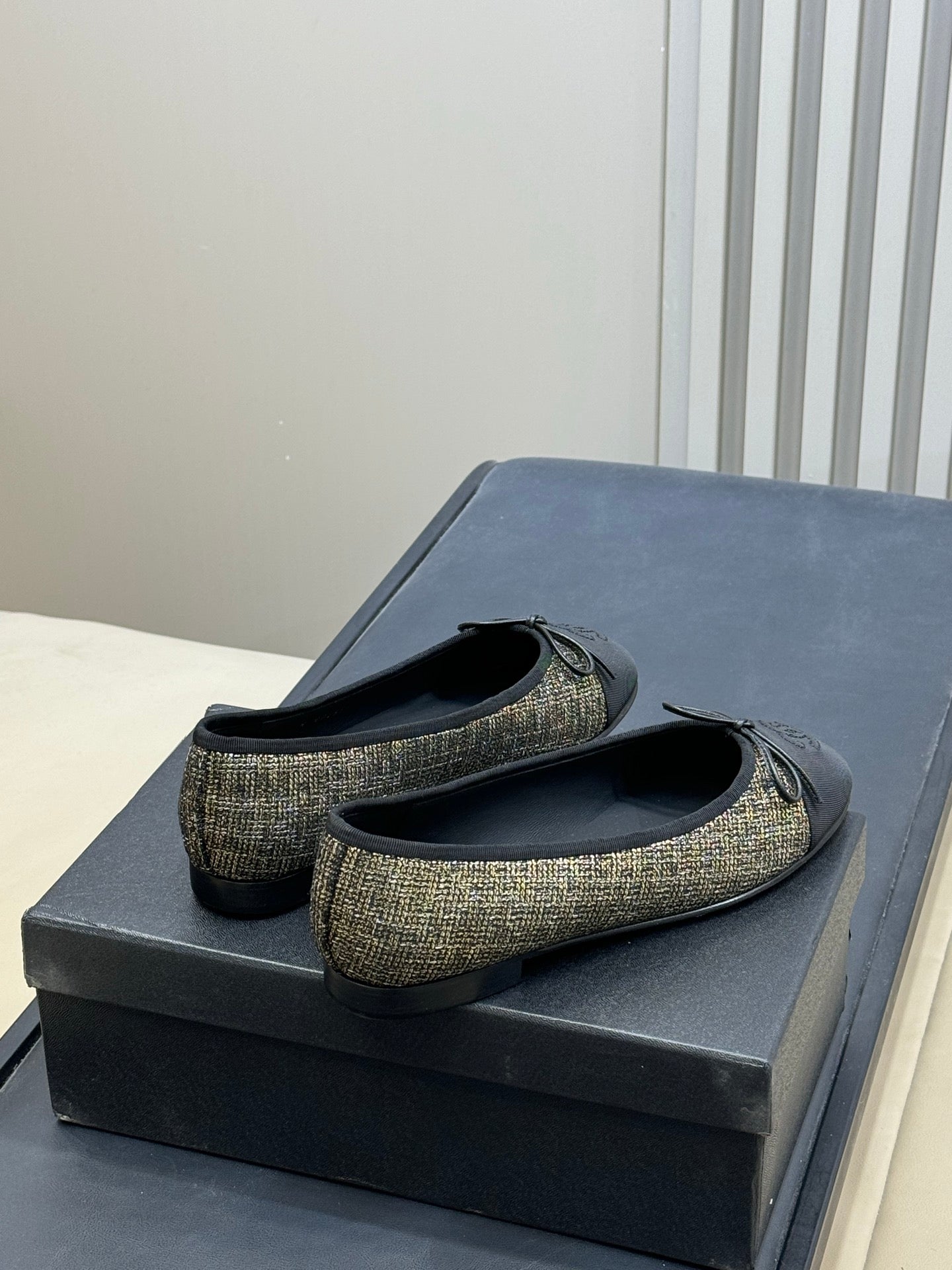CC 26ss Ballet Flat Black Gold Tweed Velvet 623157
